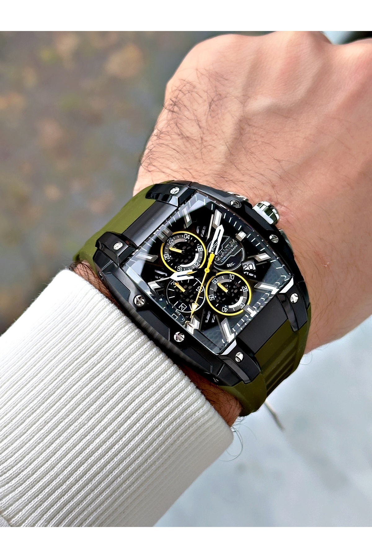 Fonksiyonlu Yeşil Renk 5 Atm Su Geçirmez Silikon Kordon Çelik Kasa Erkek Kol Saati 1161 Fonksiyonlu Yeşil Renk 5 Atm Su Geçirmez Silikon Kordon Çelik Kasa Erkek Kol Saati 1161 تک سایز