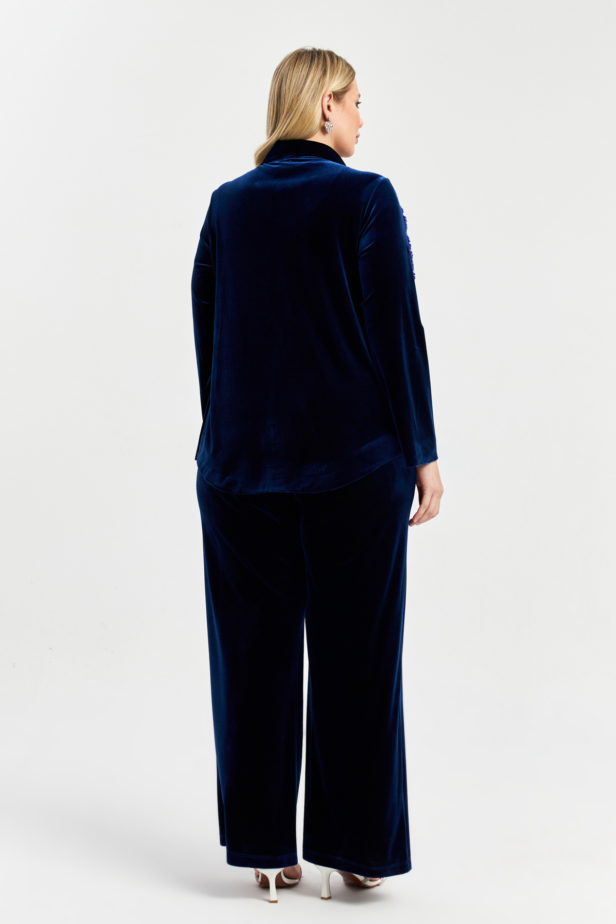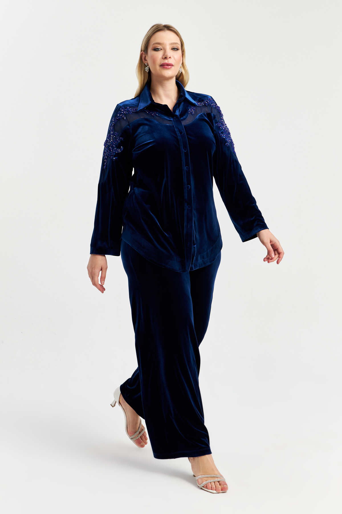 İşleme ve Tül detaylı Kadife Gömlek ve Palazzo Pantolonlu Abiye Takım İşleme ve Tül detaylı Kadife Gömlek ve Palazzo Pantolonlu Abiye Takım 498 50