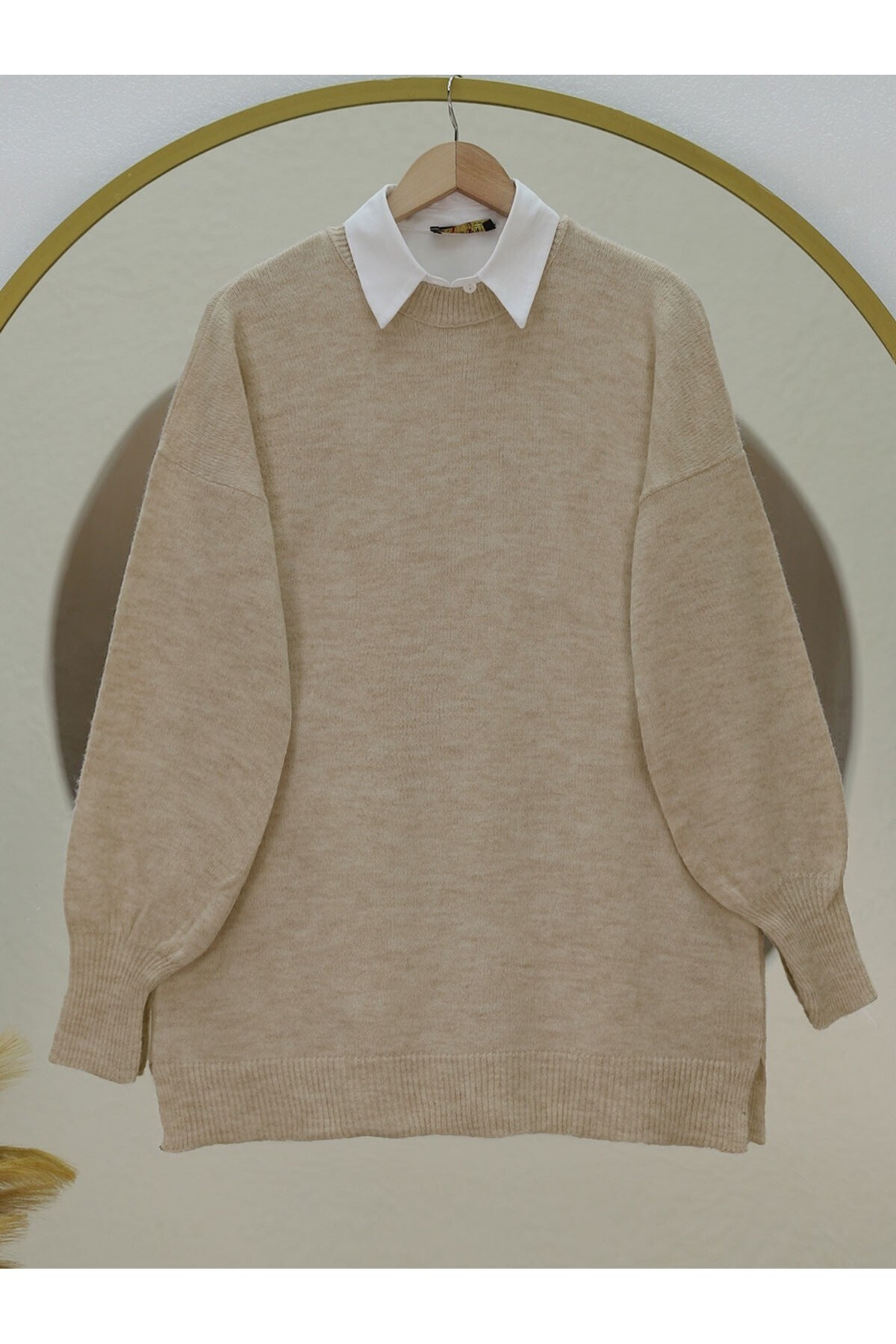 Yuvarlak Yaka Balon Kol Salaş Triko Kazak -Mürdüm Yuvarlak Yaka Balon Kol Salaş Triko Kazak -Mürdüm TY295-3416 Standart