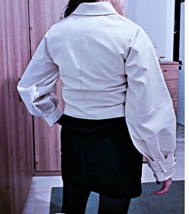 Kadın Krem Geniş Kollu Oversize Deri Ceket Kadın Krem Geniş Kollu Oversize Deri Ceket 66776523 L
