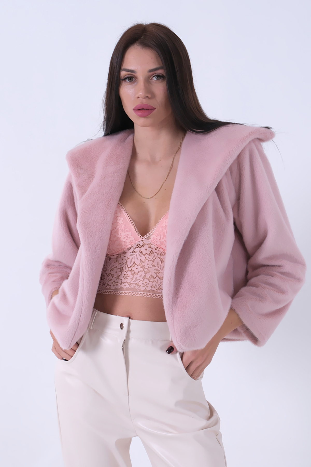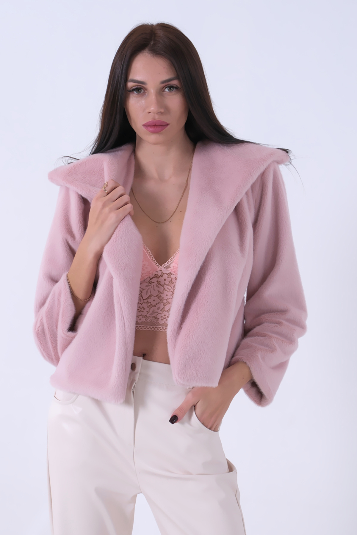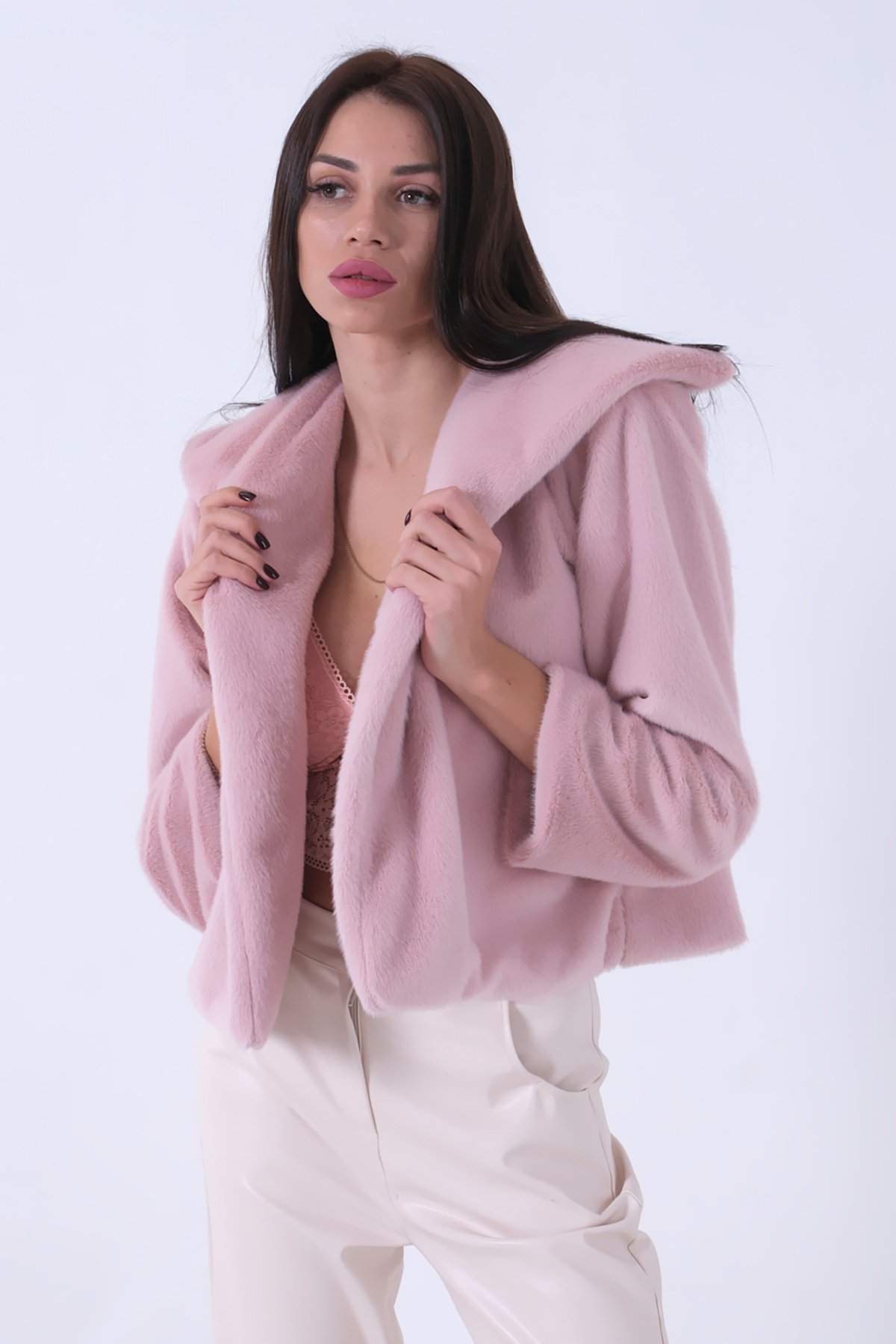 Peluş Şal Yaka Kapamasız Ceket Pudra 0105139 Peluş Şal Yaka Kapamasız Ceket Pudra 0105139 L/XL