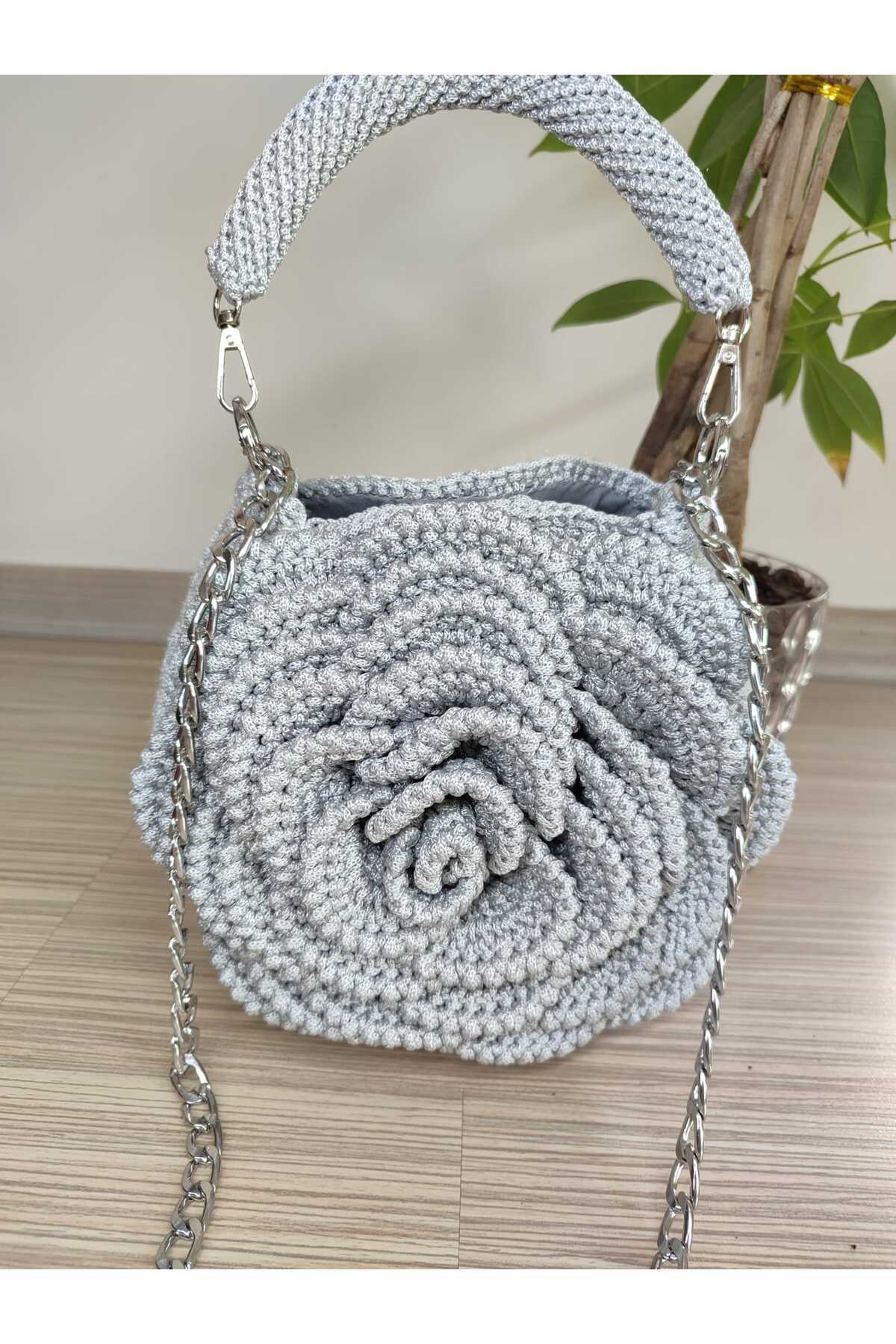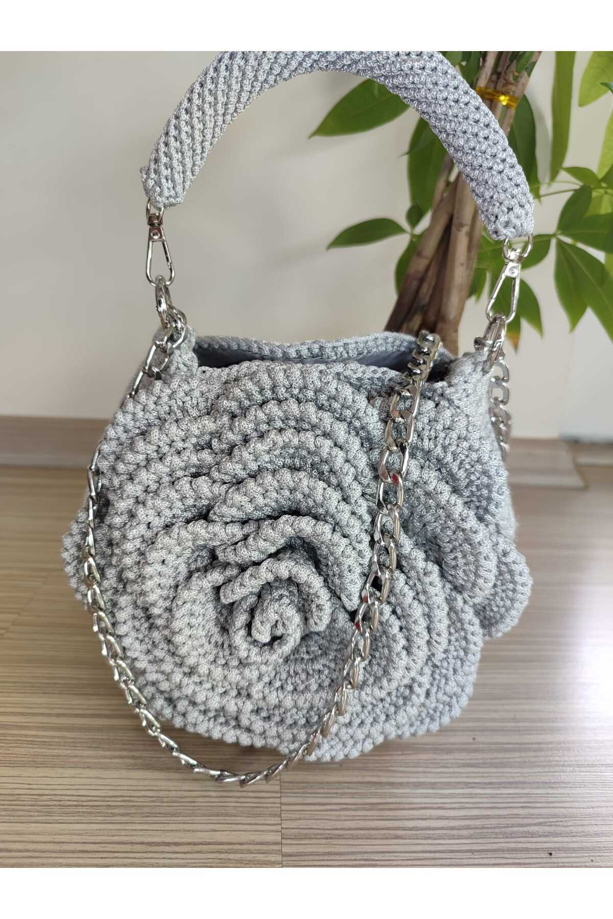 POLYESTER MAKROME İPTEN GRİ GÜL DETAYLI ÇANTA POLYESTER MAKROME İPTEN GRİ GÜL DETAYLI ÇANTA ALTNRÇTN002 تک سایز
