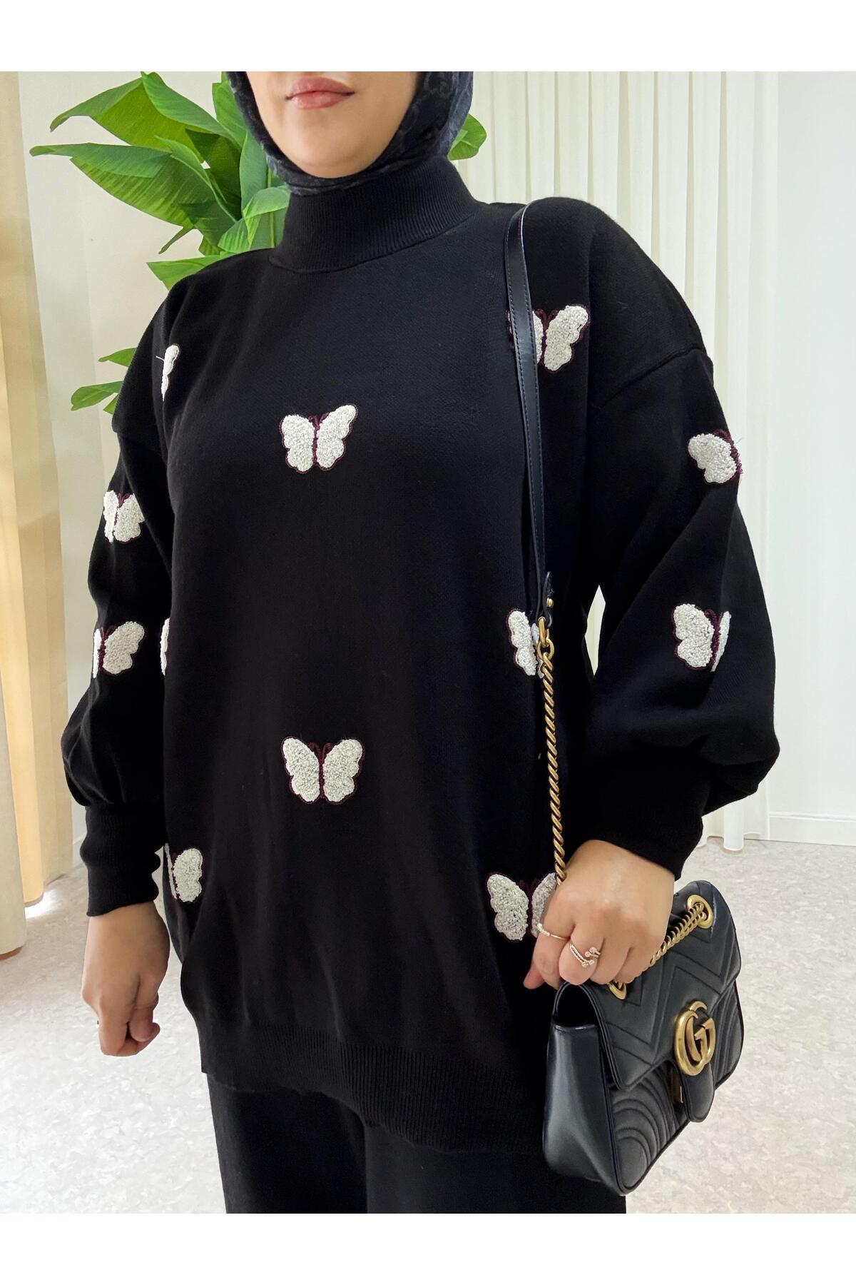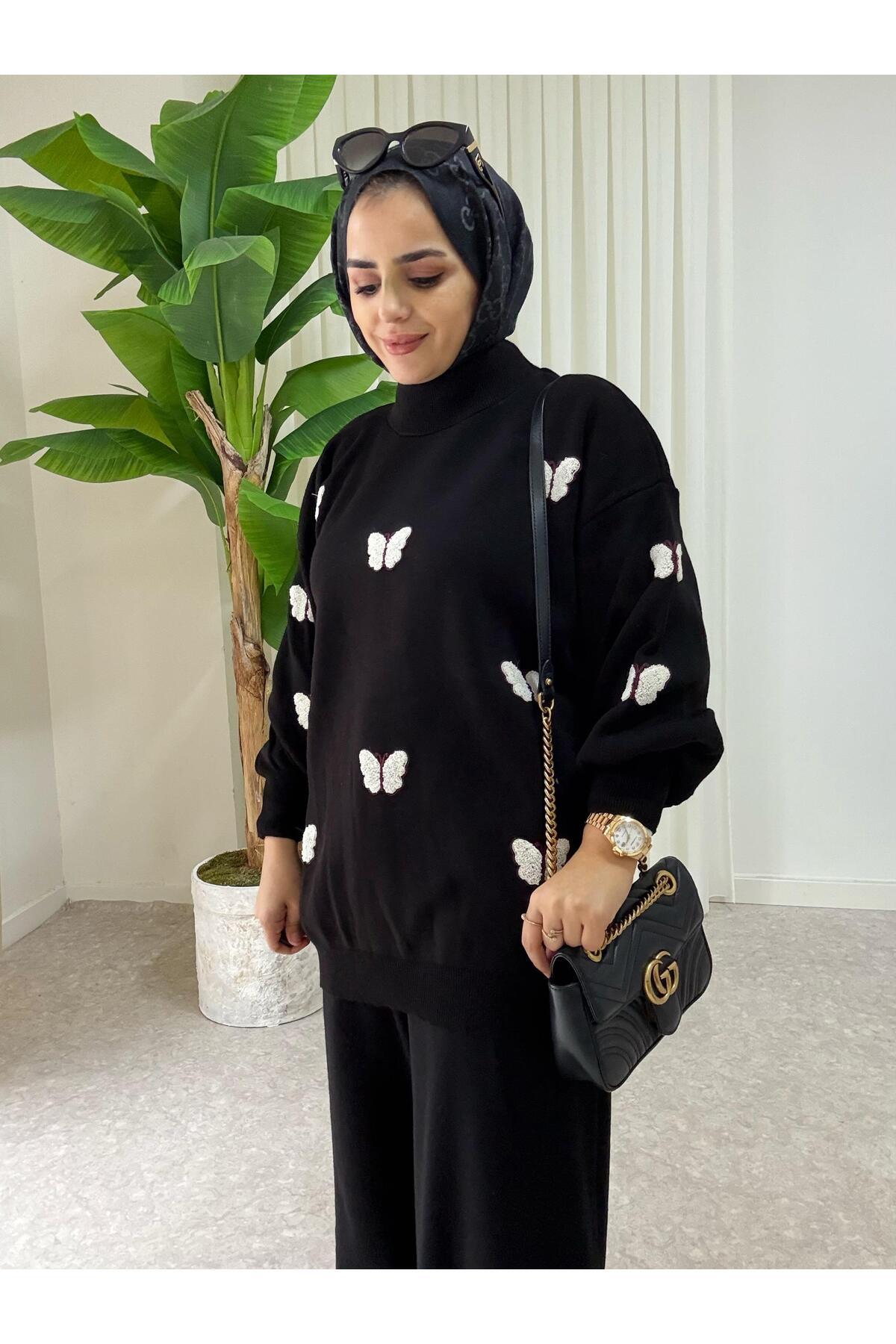 Kelebek Dokulu Günlük Triko İkili Takım Siyah Kelebek Dokulu Günlük Triko İkili Takım Siyah Asel-A3089 تک سایز