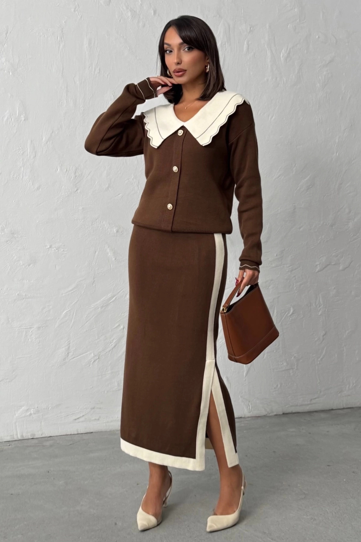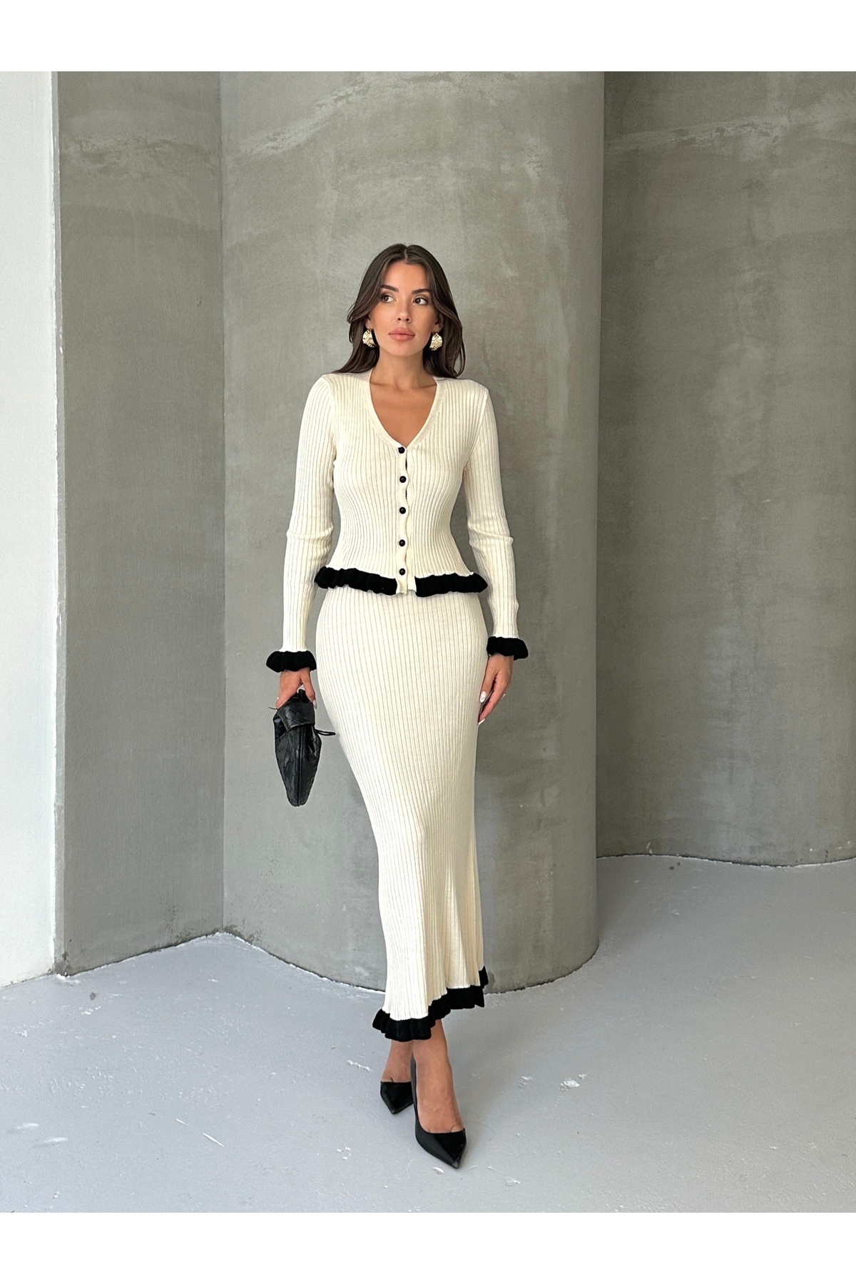 Kadın Şık Yaka Detaylı Hırka Etek Alt Üst Triko Takım - Siyah Kadın Şık Yaka Detaylı Hırka Etek Alt Üst Triko Takım - Siyah LSN096 Standart