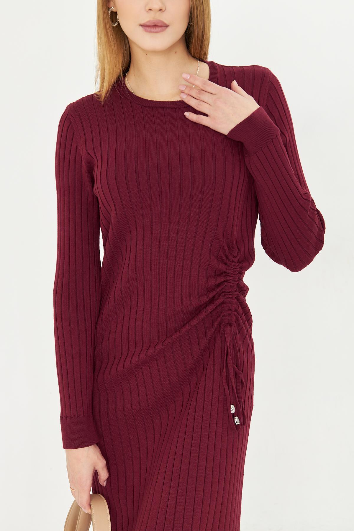 Kadın Bordo Büzgülü Fitilli Triko Elbise 29104 Kadın Bordo Büzgülü Fitilli Triko Elbise 29104 Standart
