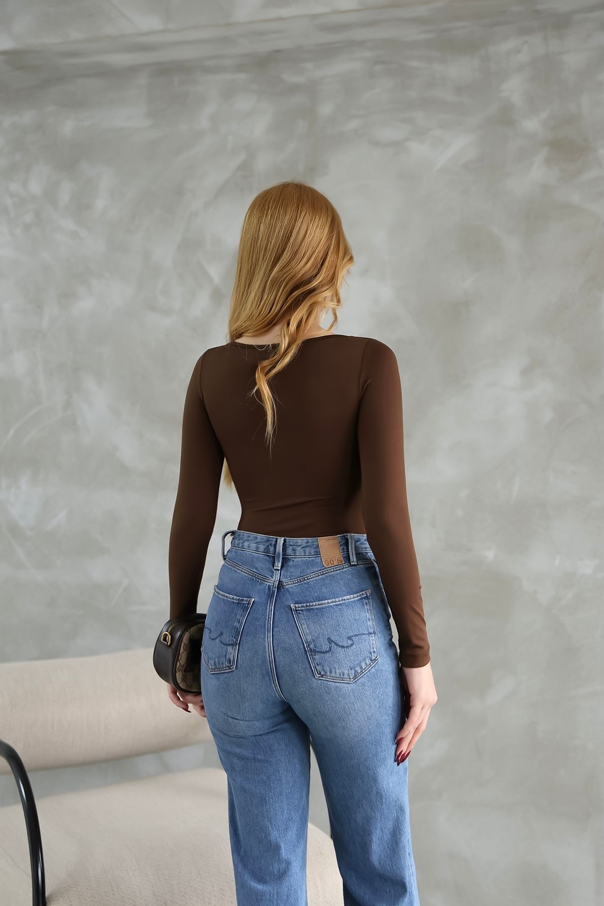 Kadın Kahverengi Kare Yaka Ön Çift Kat Polyemid Body KRY7778 Kadın Kahverengi Kare Yaka Ön Çift Kat Polyemid Body KRY7778 XL