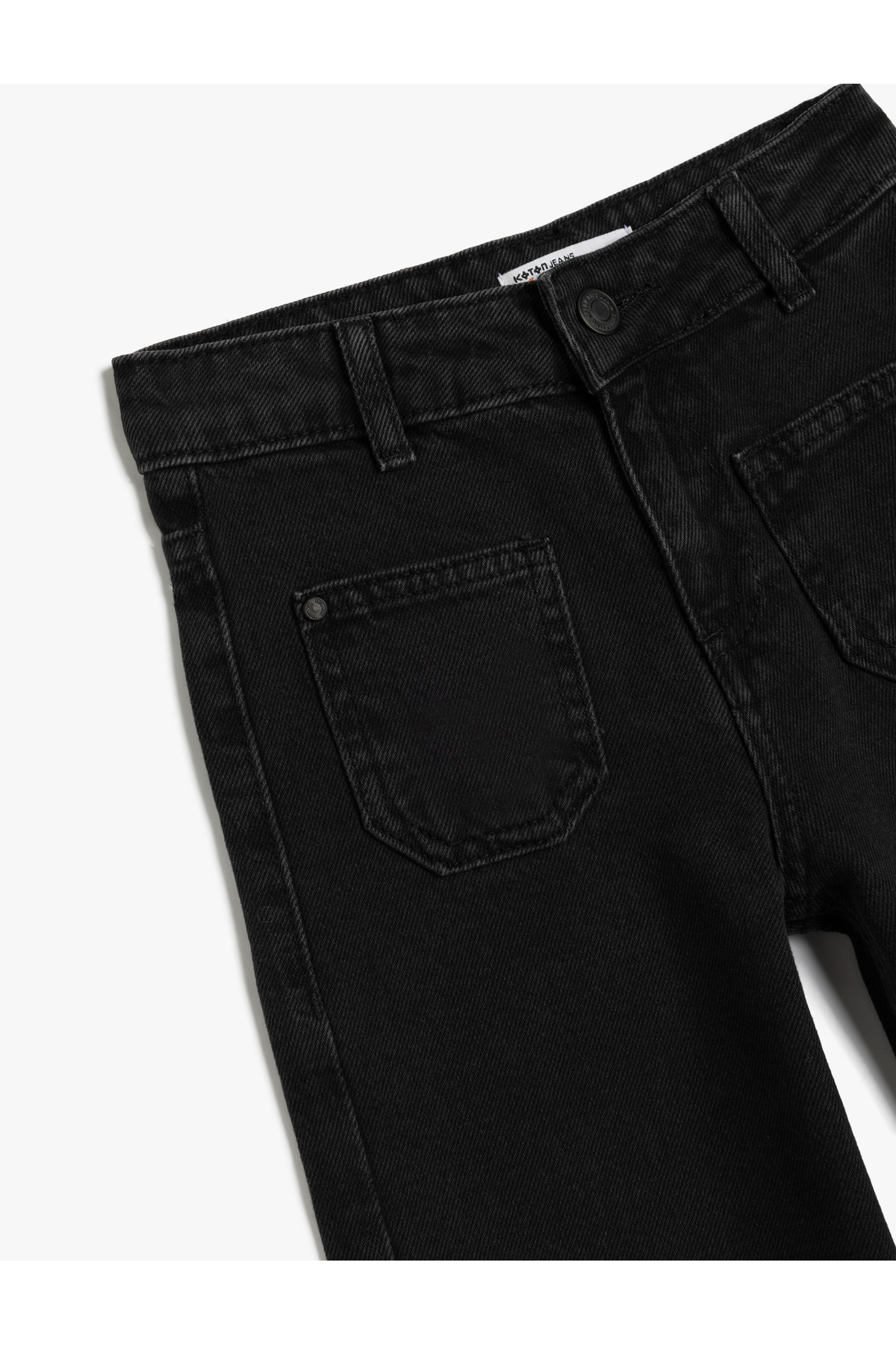 Kot Pantolon Geniş Paça Cepli Pamuklu - Wide Leg Jean Kot Pantolon Geniş Paça Cepli Pamuklu - Wide Leg Jean 5SKG40019AD Standart