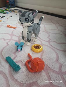 - Diğer Özellikler : Includes accessories like a food bowl and a toy mouse, movable parts (head, ears, tail, and legs), 3-in-1 set allowing multiple builds (cat, dog, pigeon)