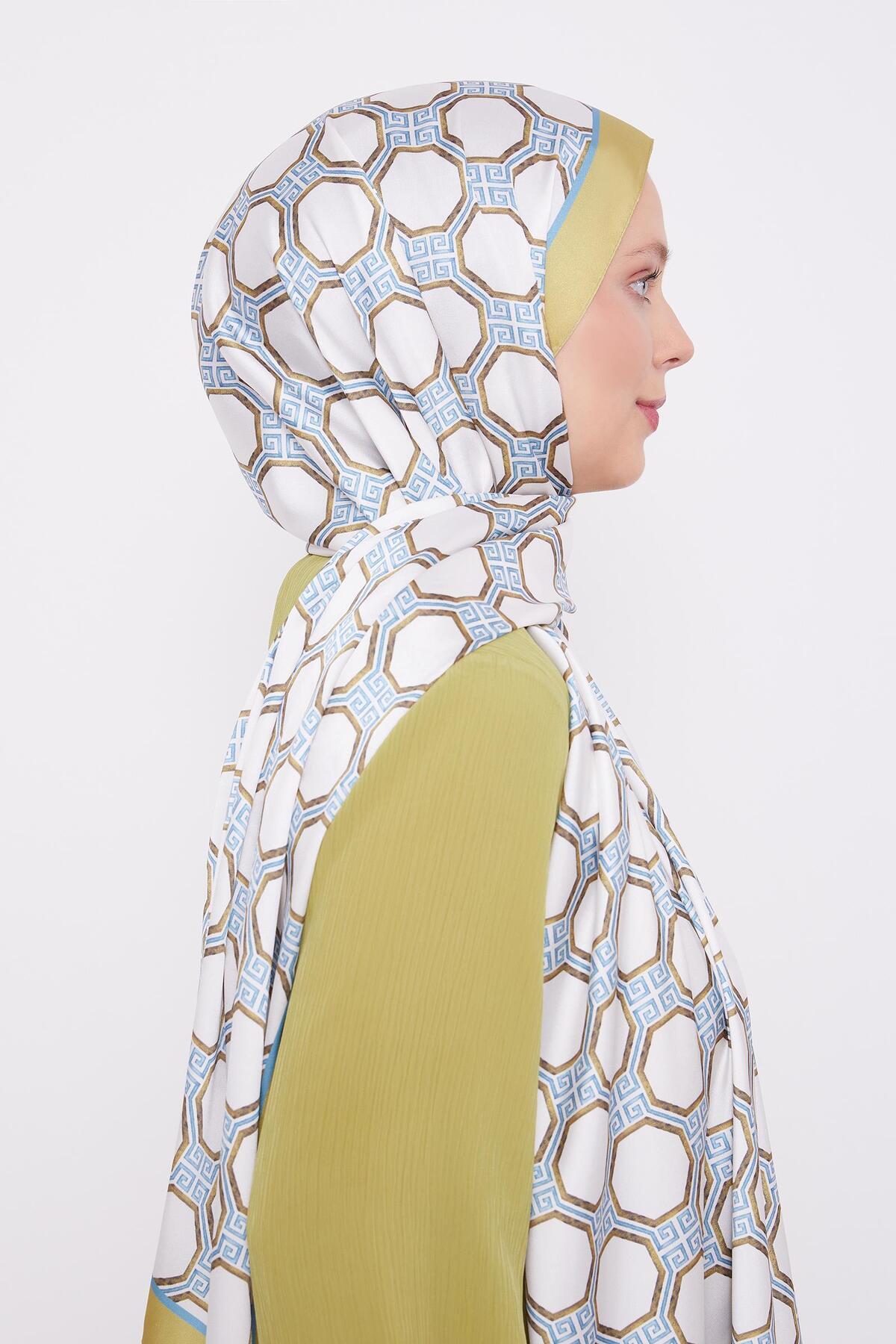 Yağ Yeşili Altıgen Desen Angel Şal Yağ Yeşili Altıgen Desen Angel Şal LVD.ANG.0013 75 x 195