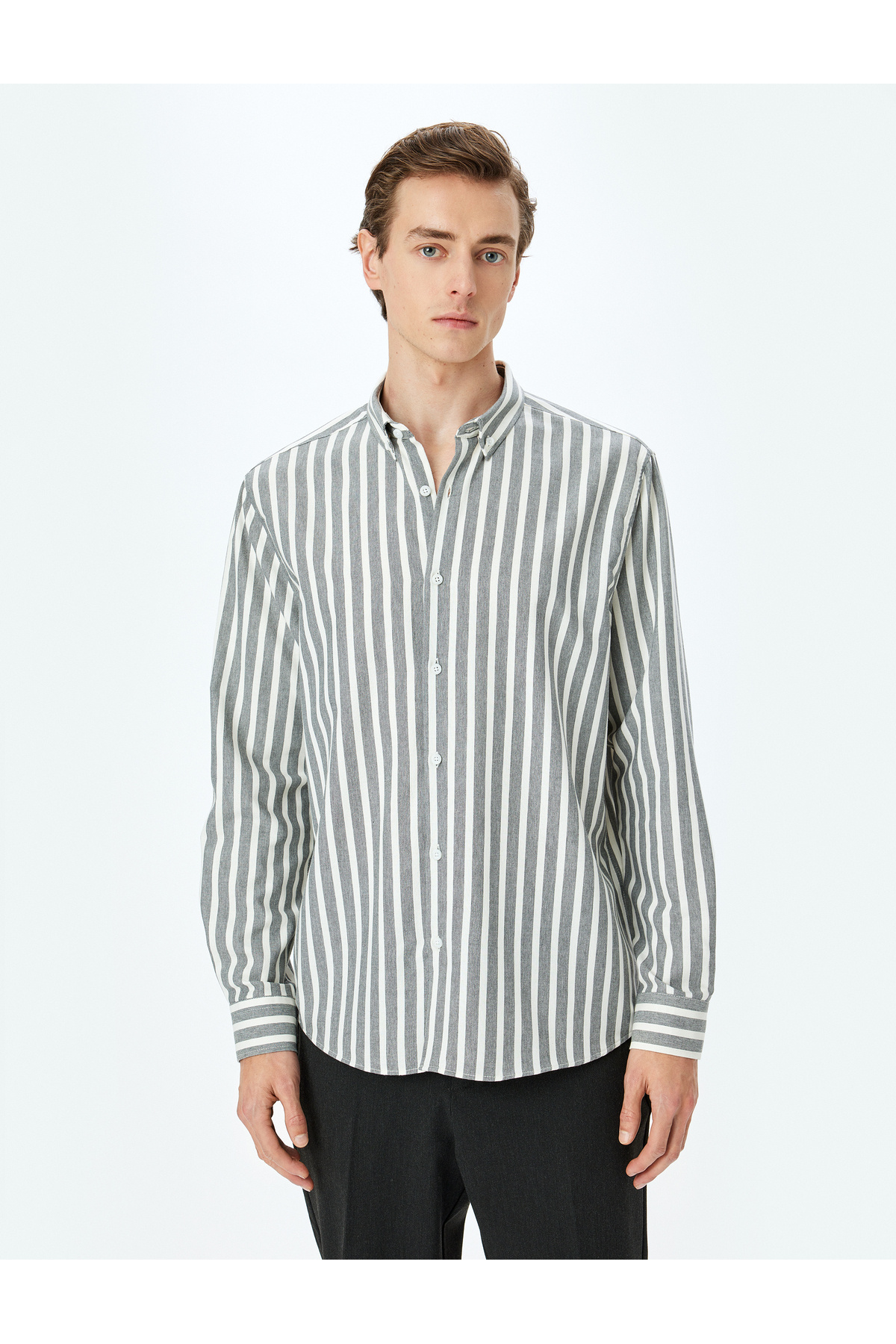 Çizgili Uzun Kollu Düğmeli Yaka Slim Fit Gömlek Çizgili Uzun Kollu Düğmeli Yaka Slim Fit Gömlek 5SAM60023HW XL