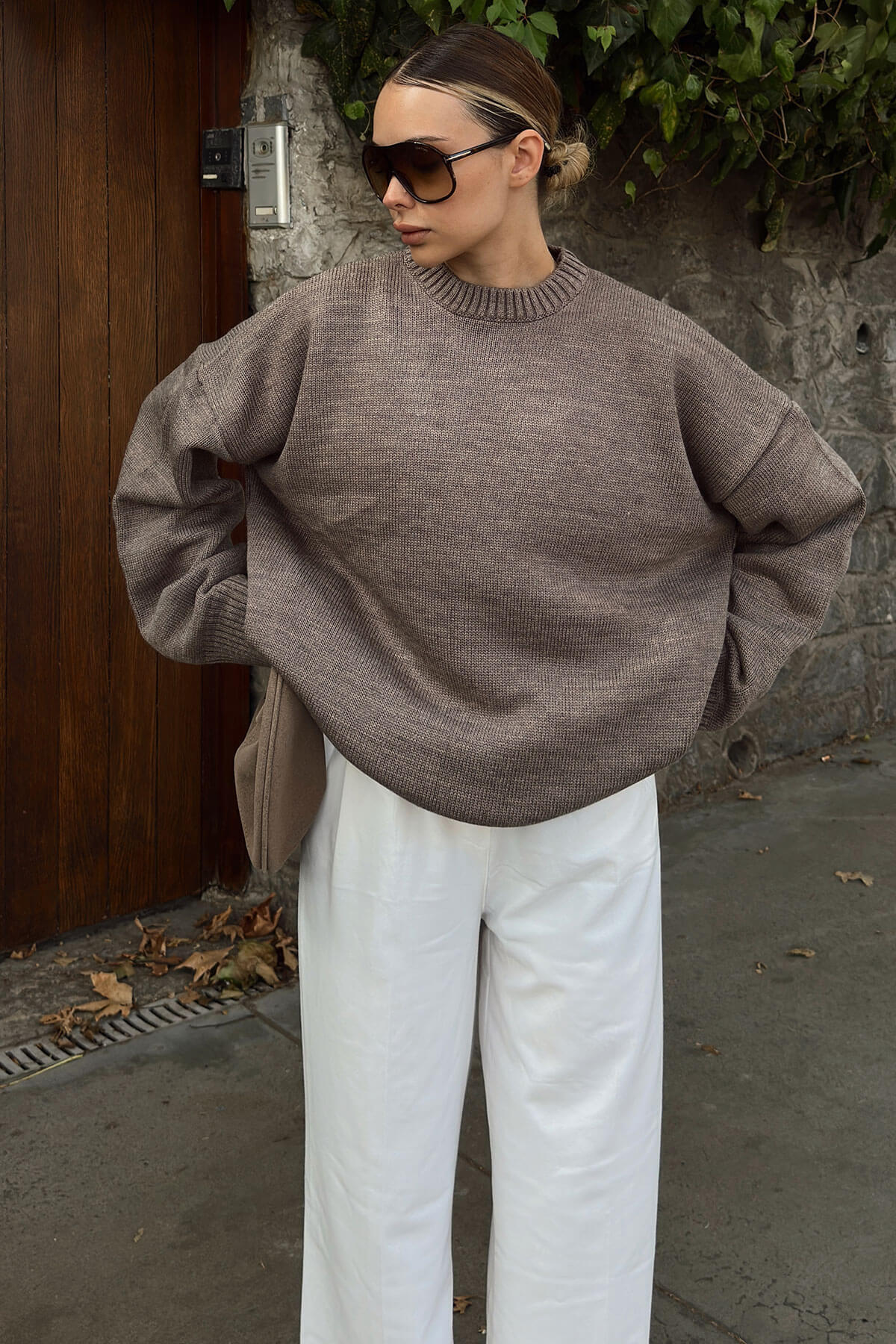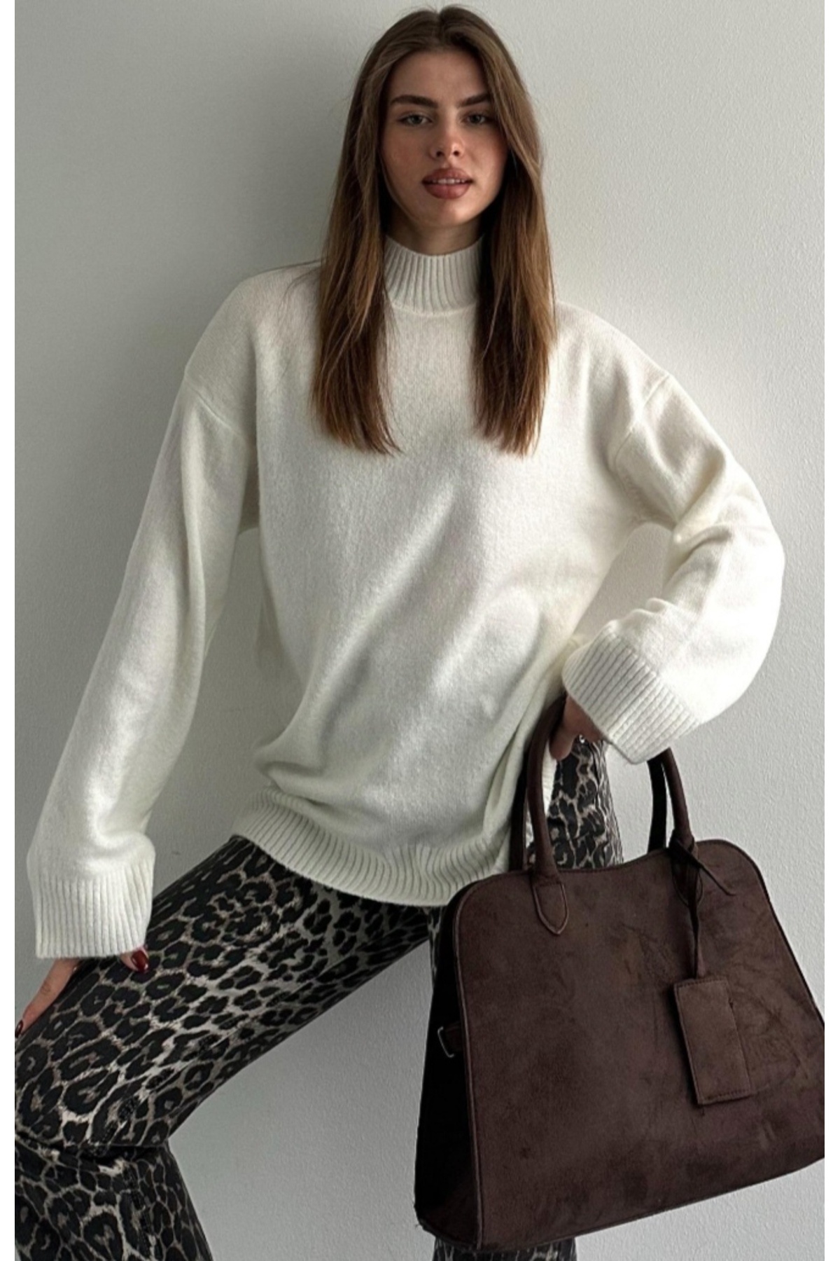 Kadın Dik Yaka Oversize Triko Kazak Kadın Dik Yaka Oversize Triko Kazak 2326 Standart