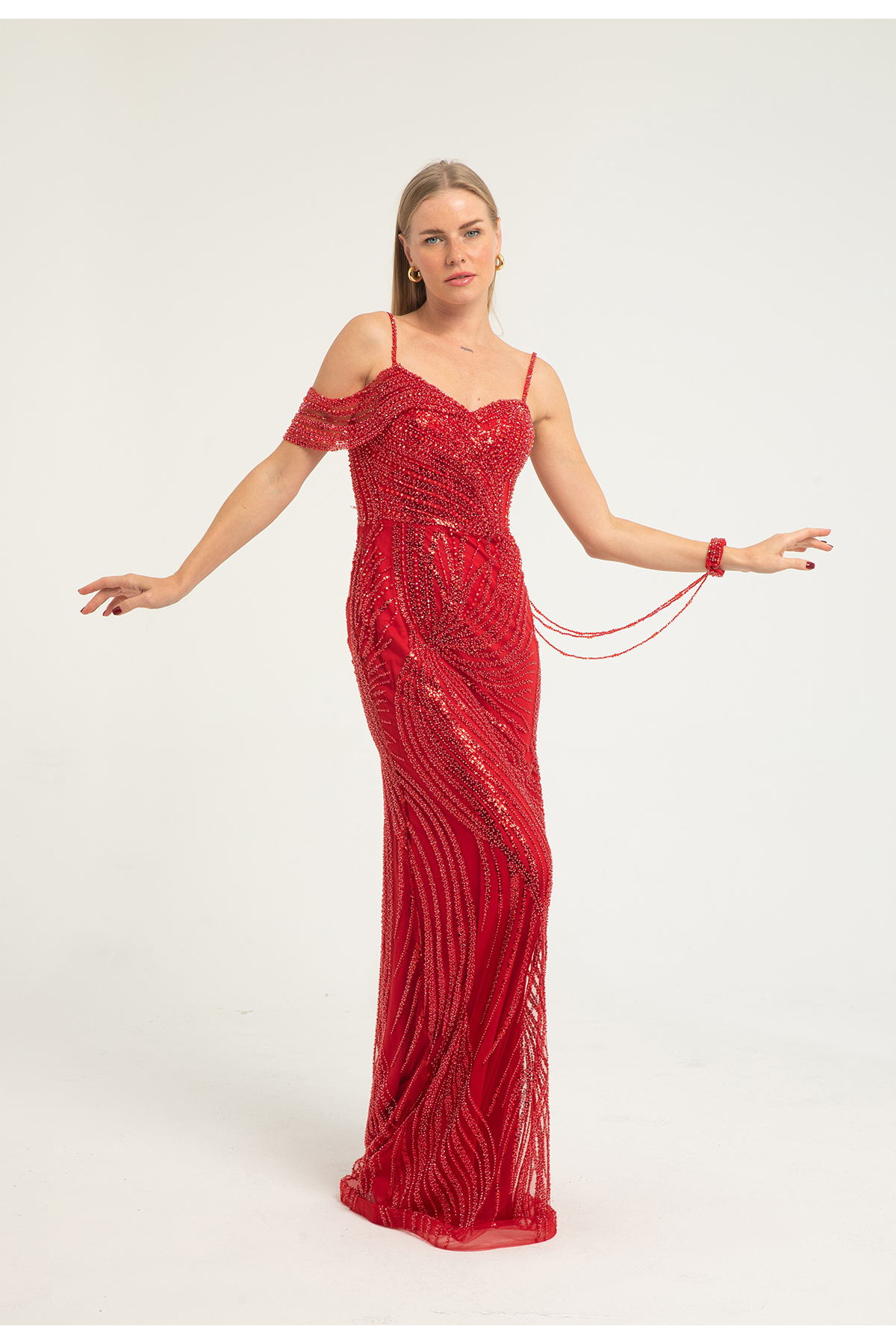 Boncuk İşlemeli Modern Elbise Boncuk İşlemeli Modern Elbise 2138 42