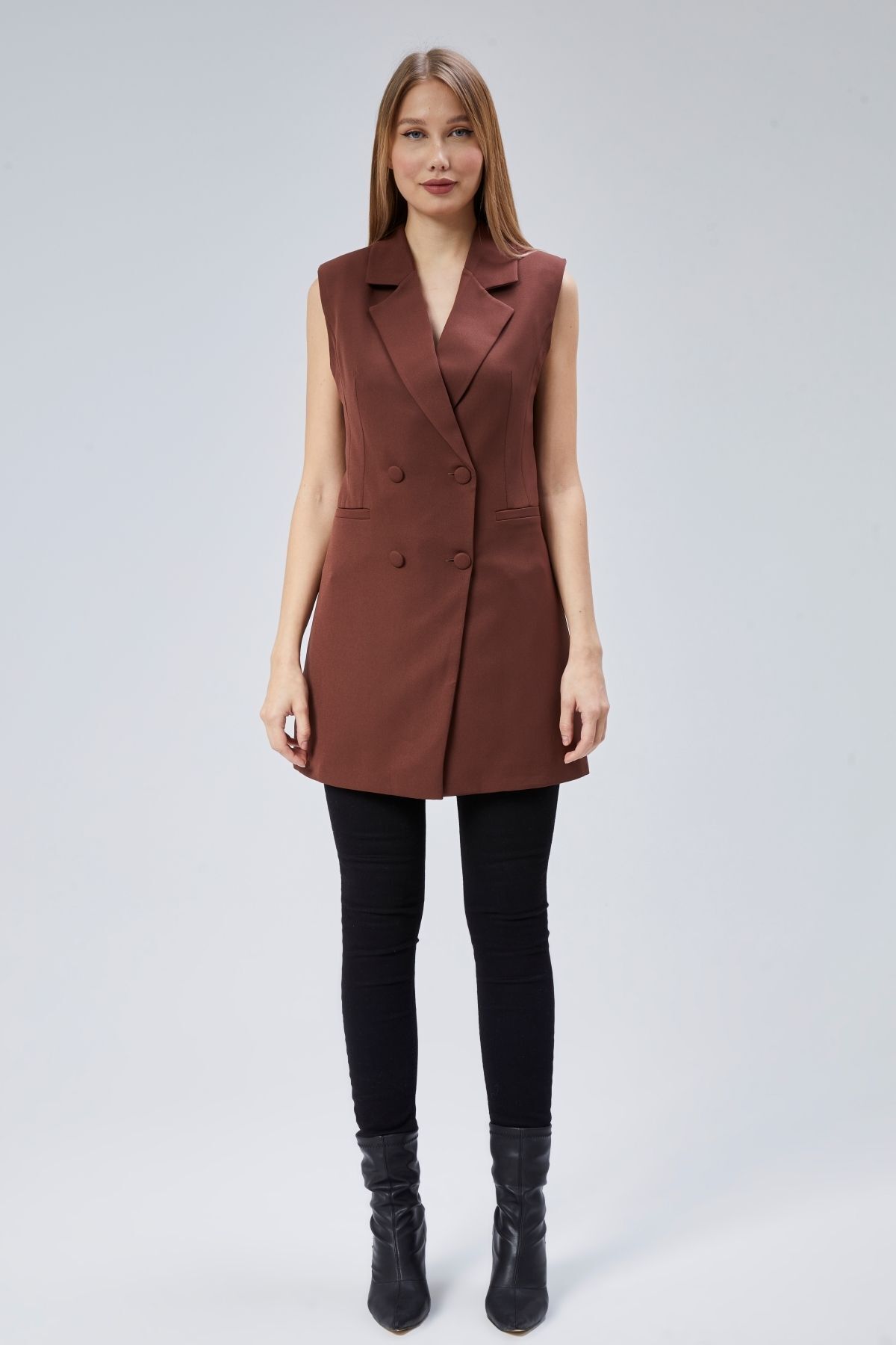 Kadın Uzun Kruvaze Dokuma Yelek Kadın Uzun Kruvaze Dokuma Yelek 46145 XL