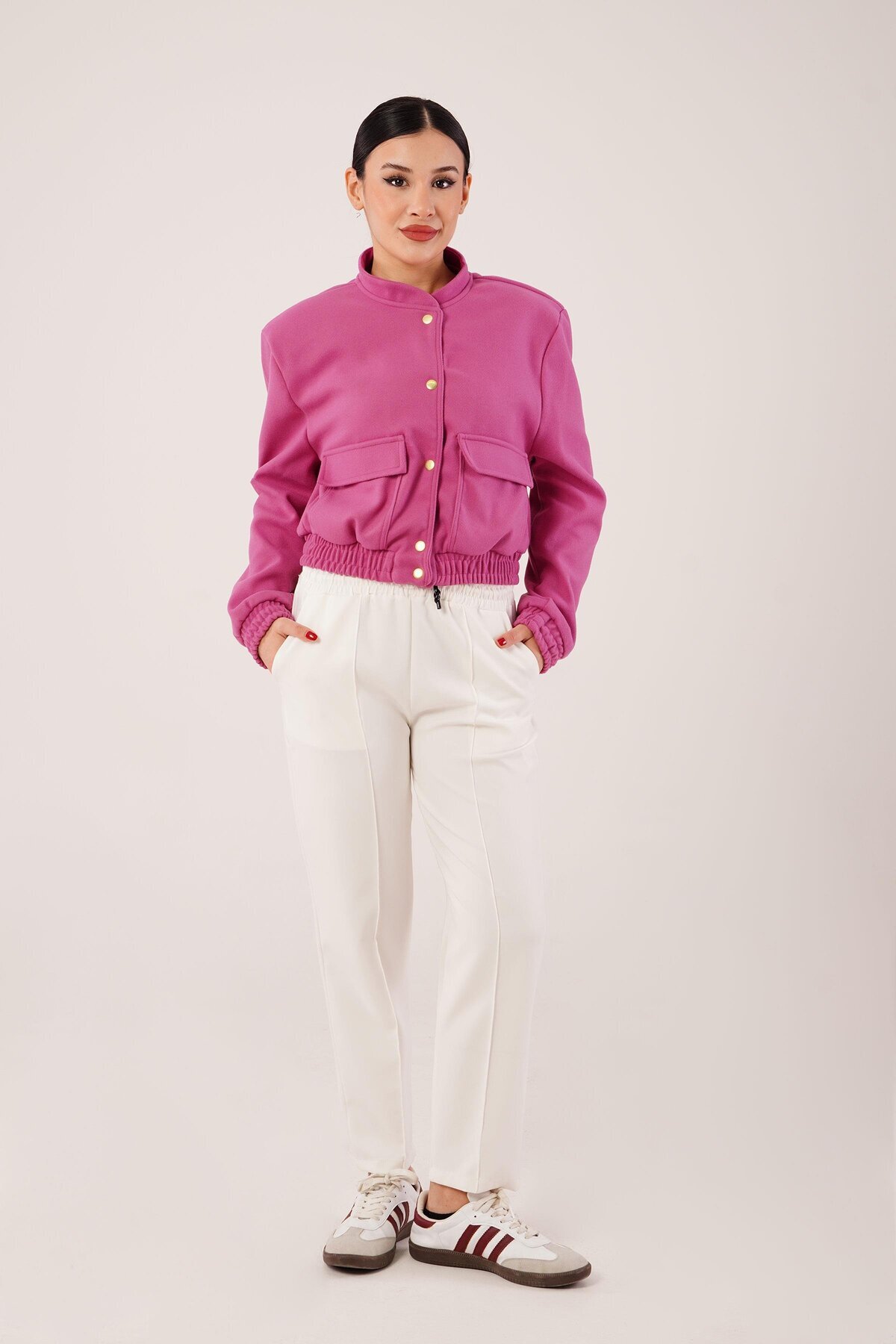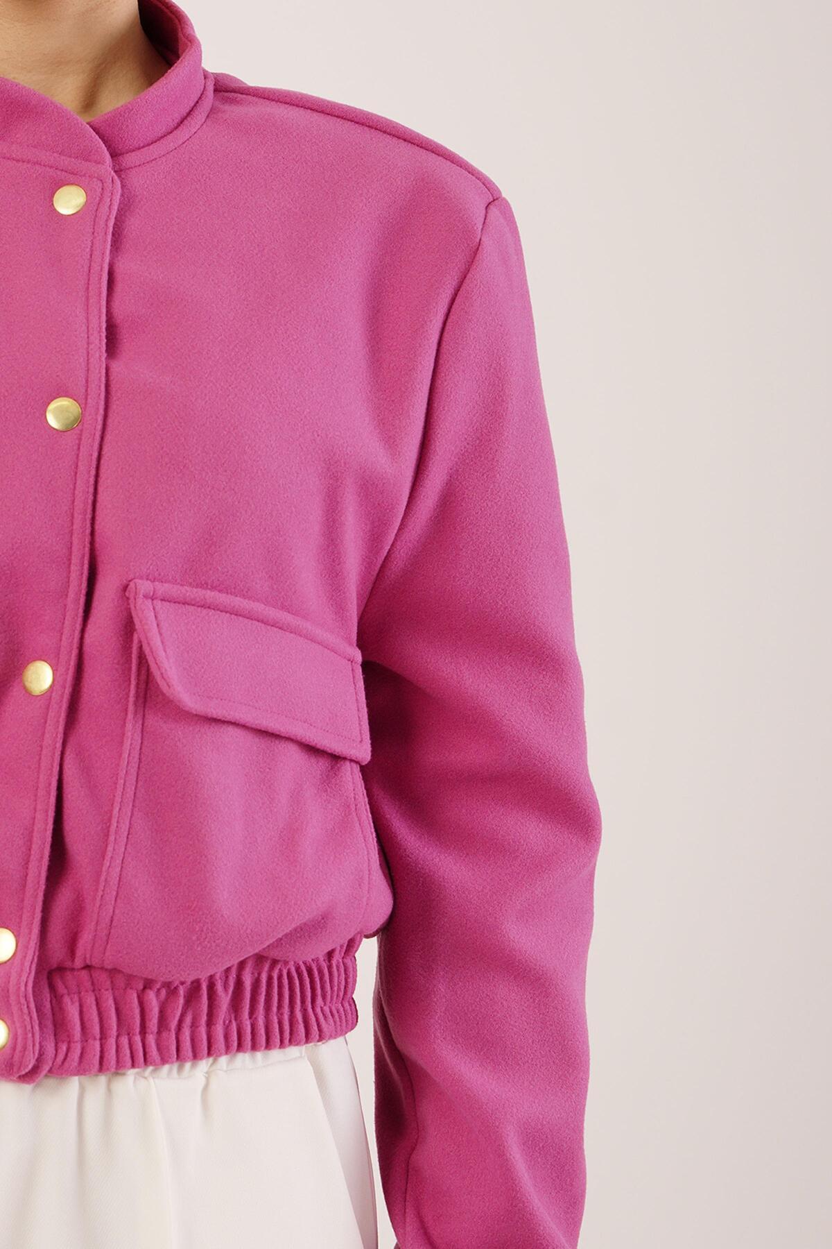 Gold Düğmeli Kaşe Magenta Bomber Ceket Gold Düğmeli Kaşe Magenta Bomber Ceket 2001-4681 XL
