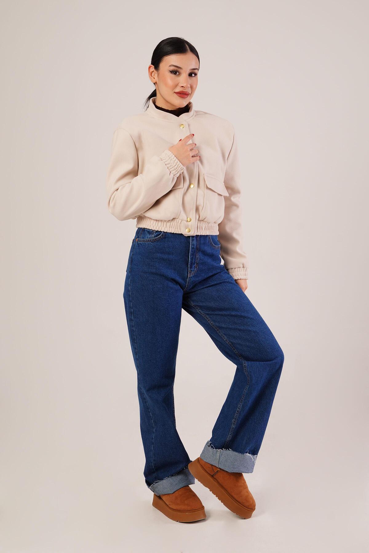 Gold Düğmeli Kaşe Taş Bomber Ceket Gold Düğmeli Kaşe Taş Bomber Ceket 2001-4681 XL