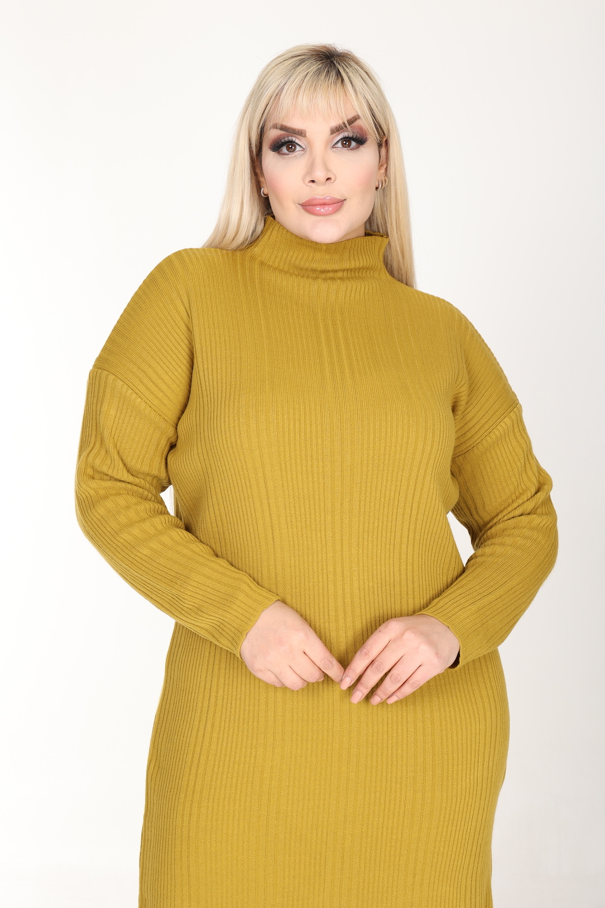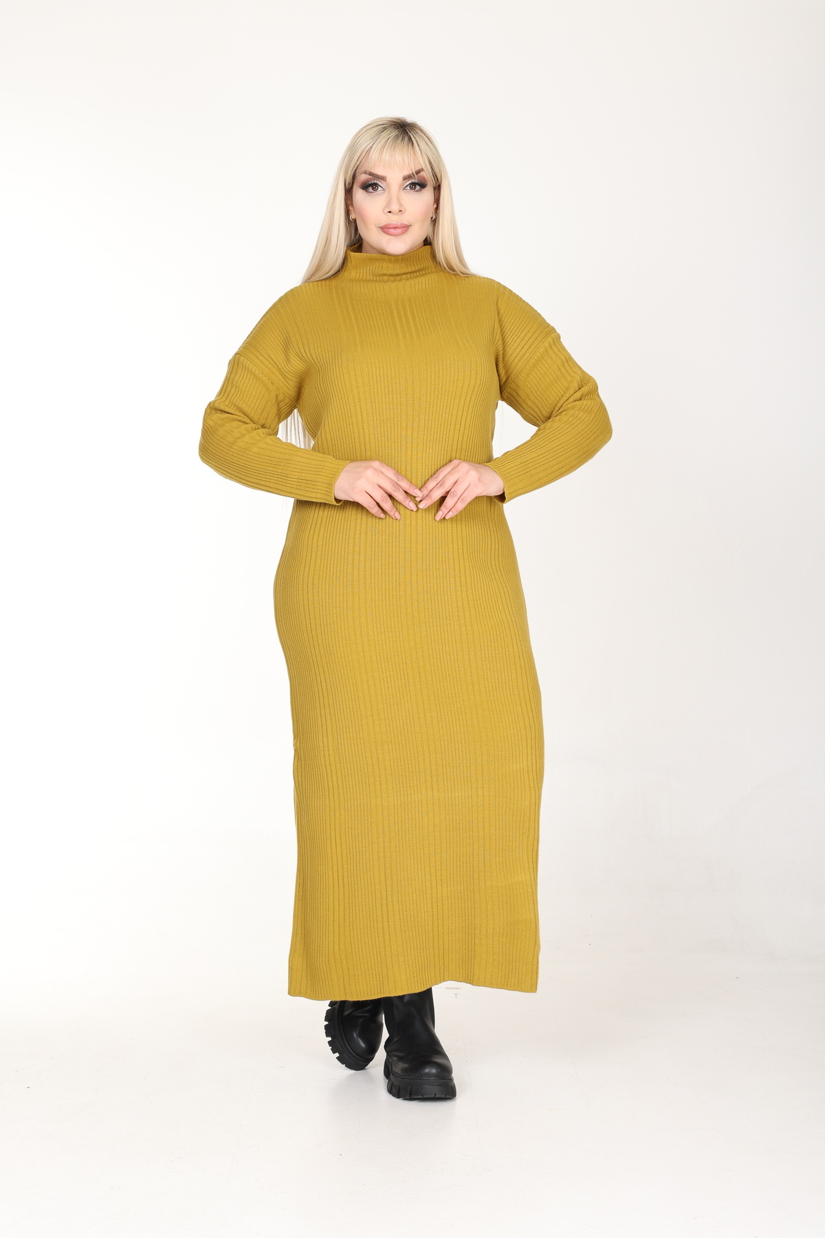 Yağ Yeşili Yarım Balıkçı Yaka Triko Örme Elbise Yağ Yeşili Yarım Balıkçı Yaka Triko Örme Elbise MJ00295 Standart