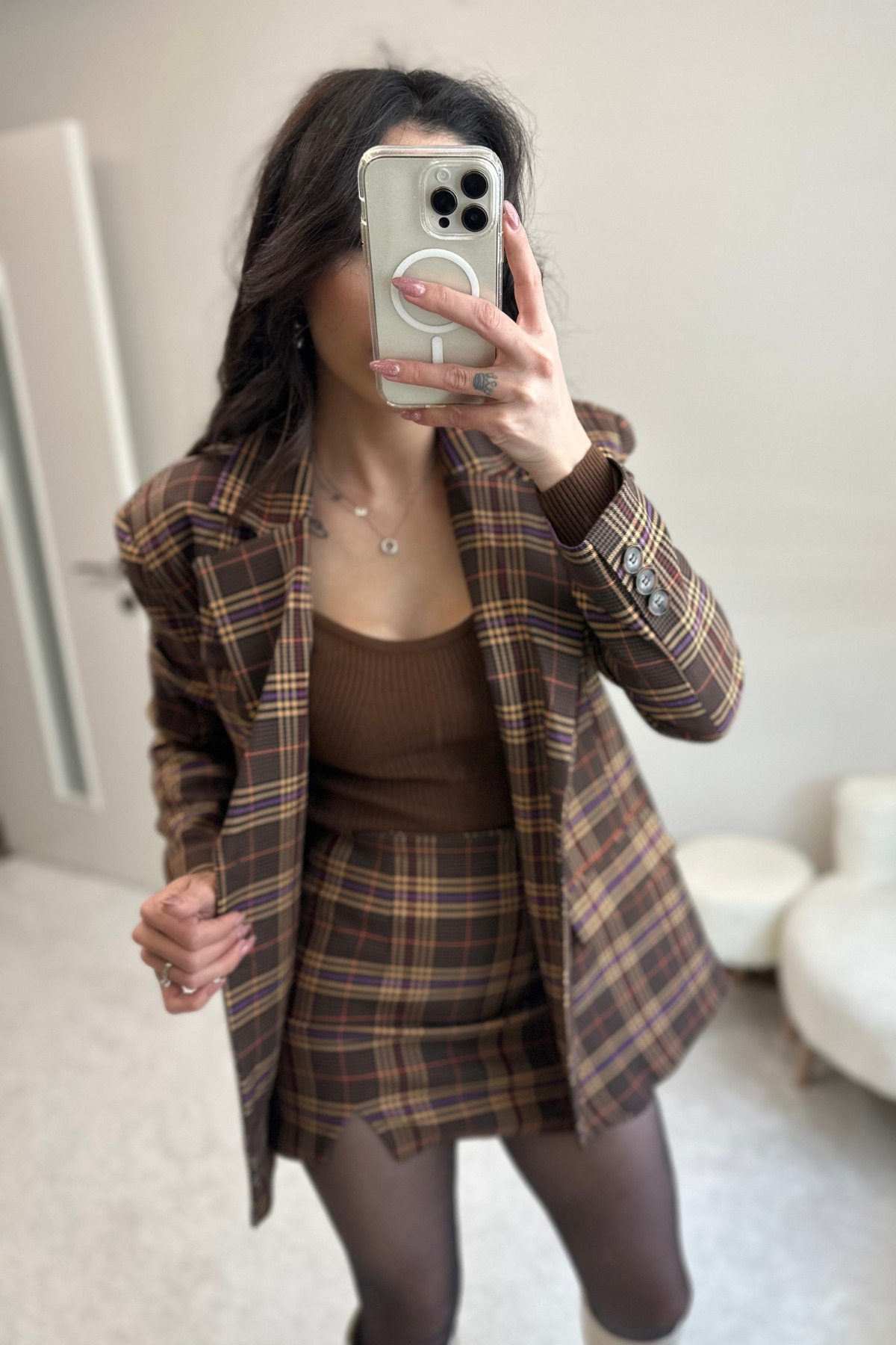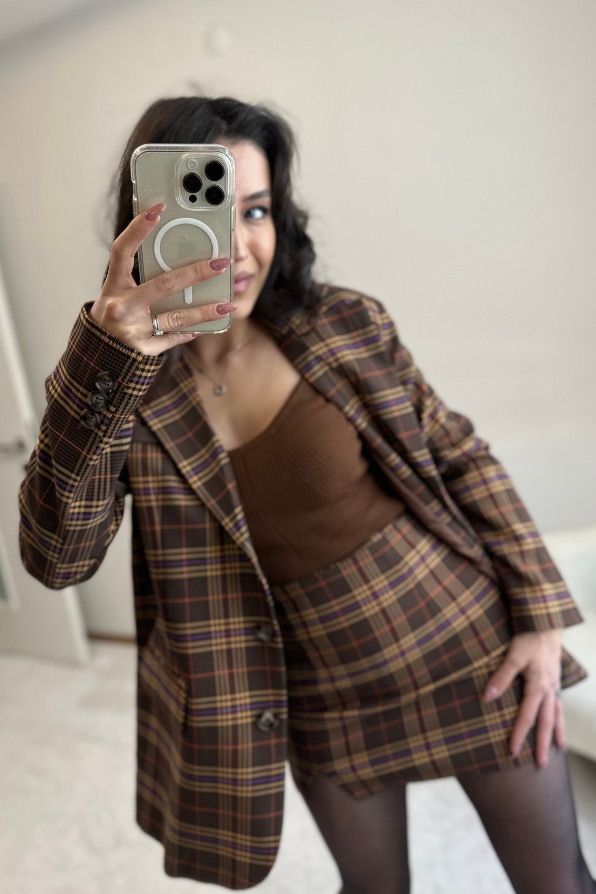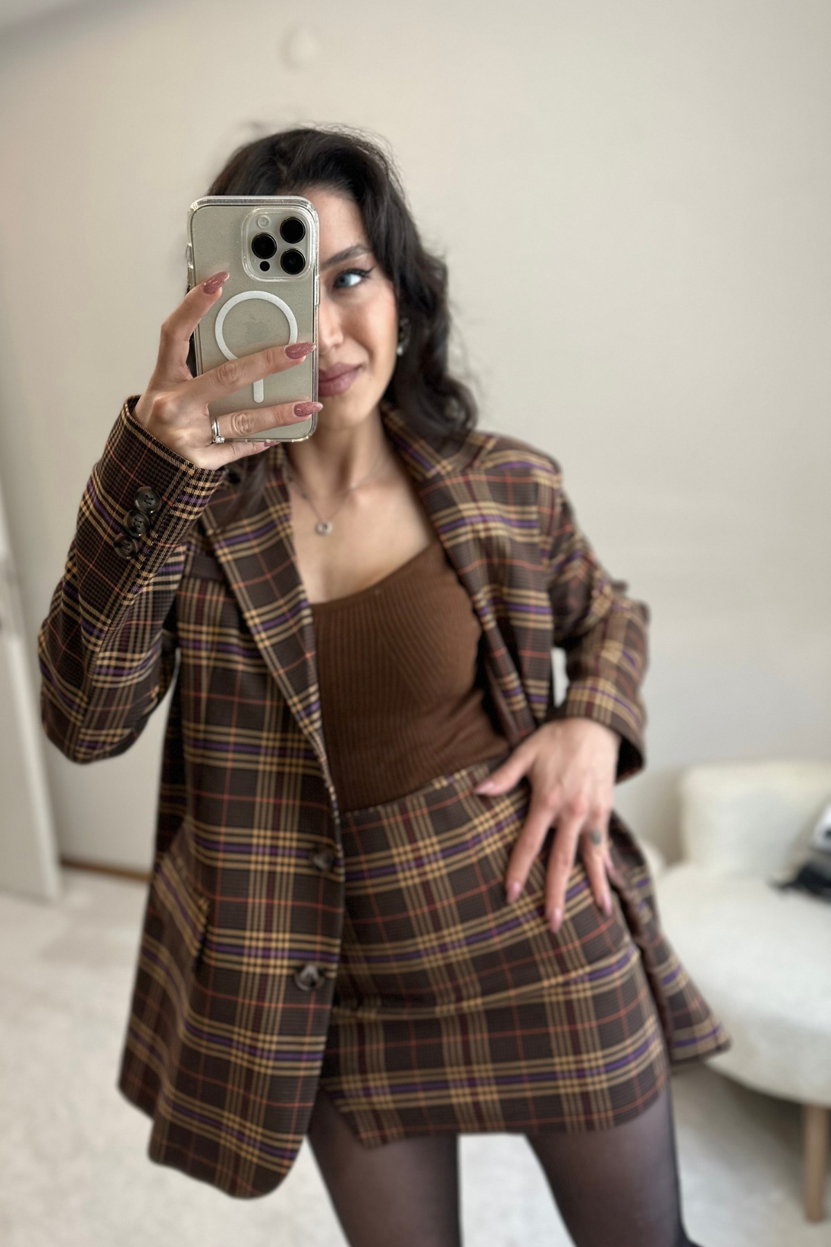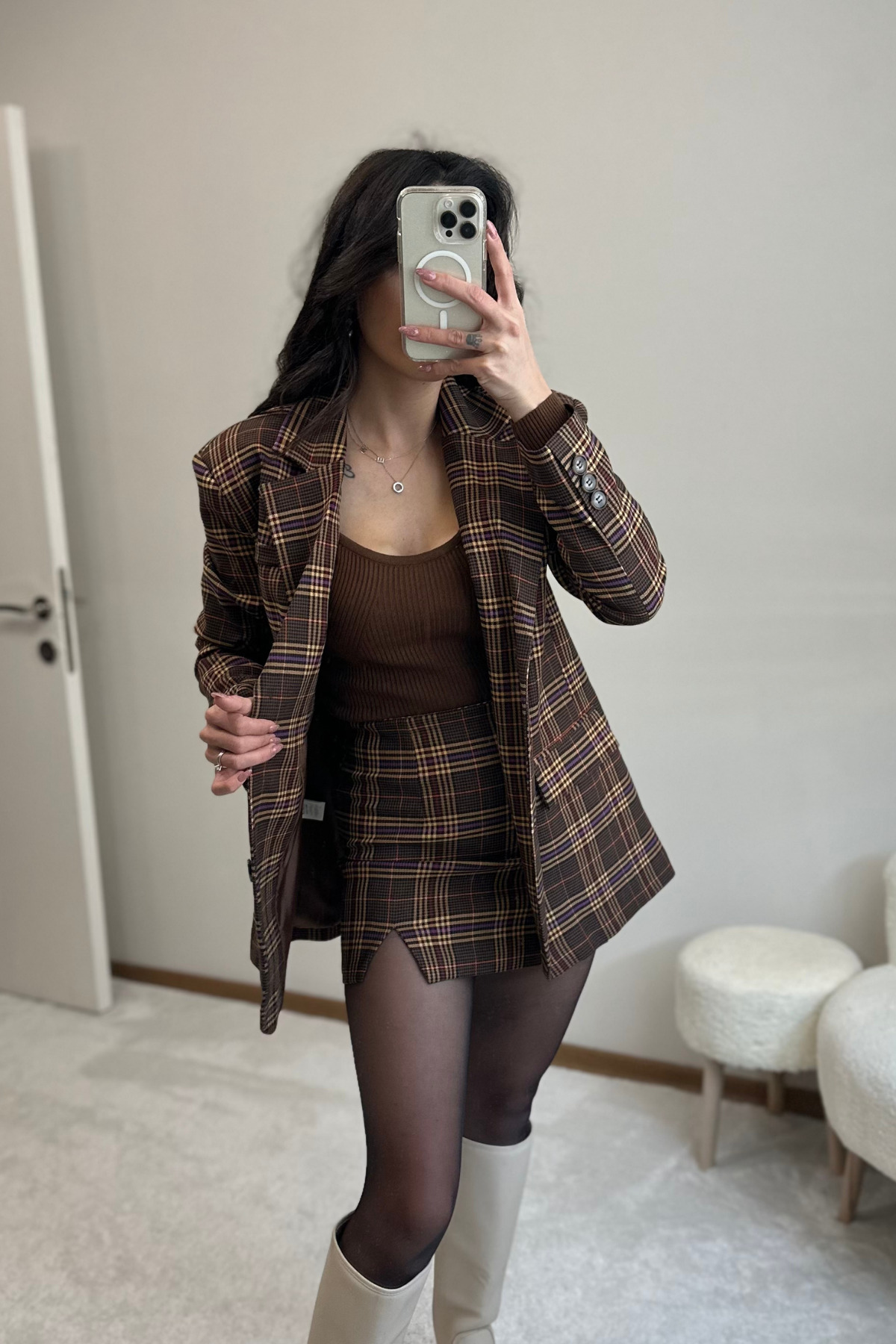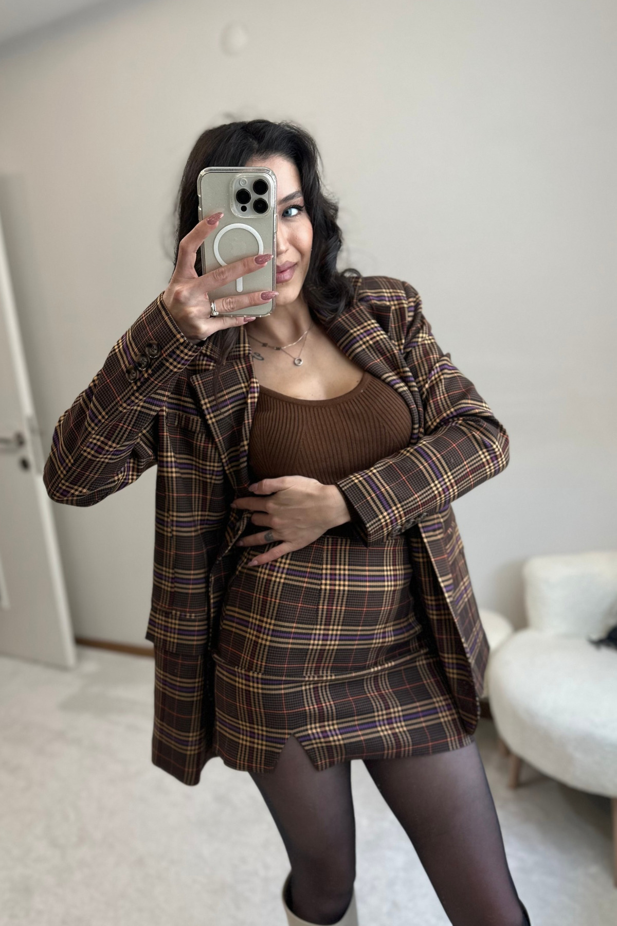 Premium Kalite Kareli Kahverengi Etek Ceket Alt Üst Takım Premium Kalite Kareli Kahverengi Etek Ceket Alt Üst Takım TYC1C6ADC40FADDE00 L