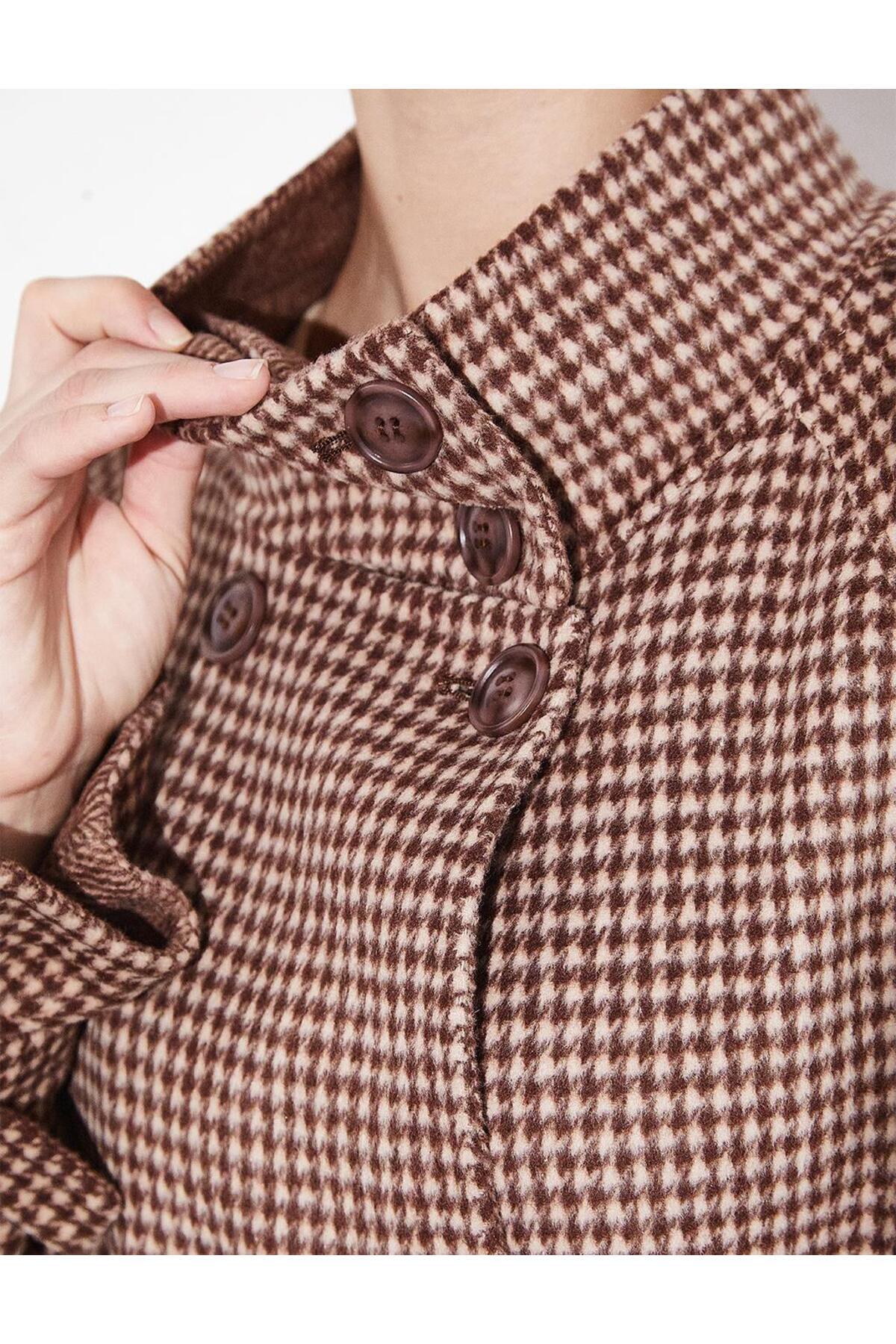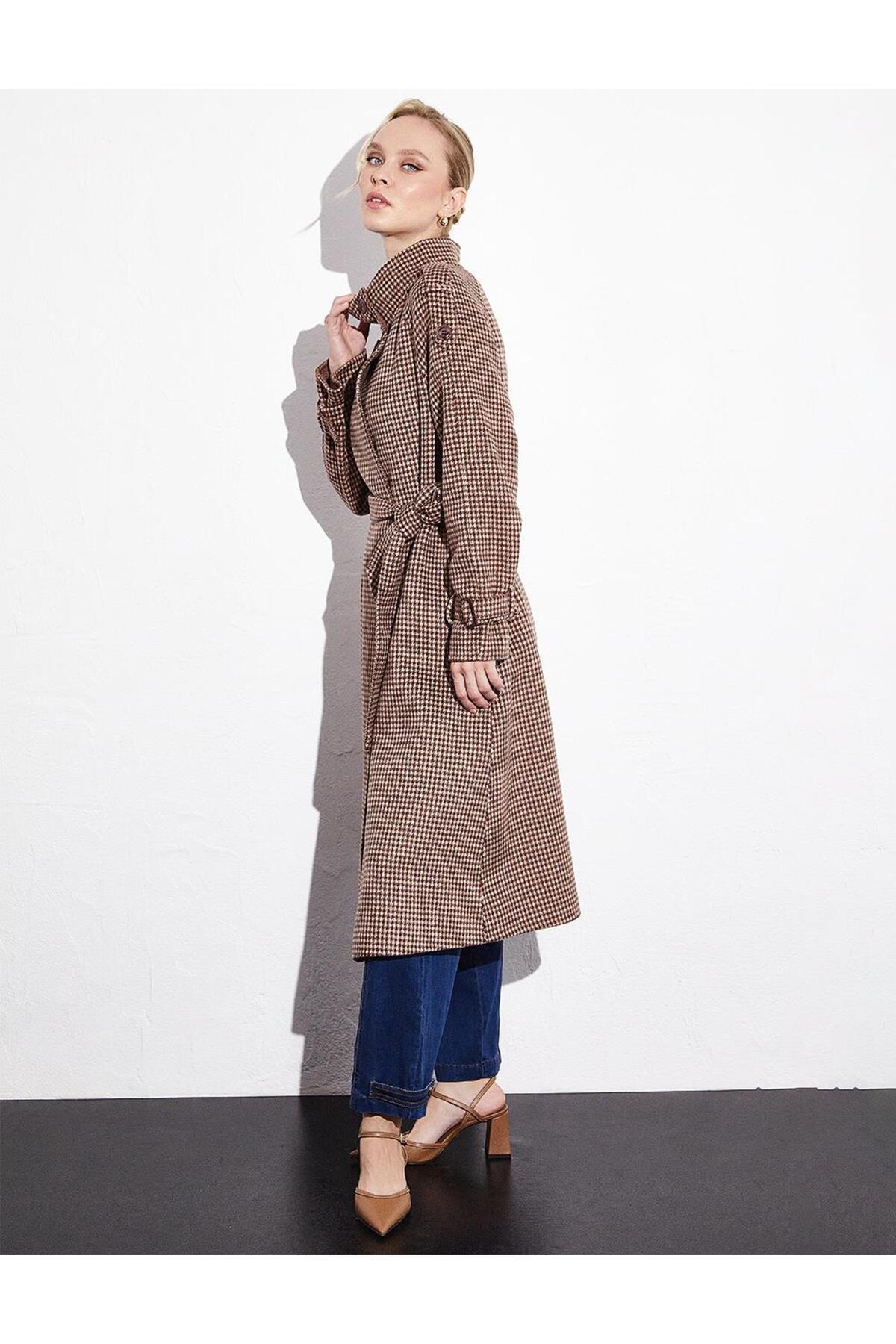Premium Yün Dik Yaka Kuşaklı Kaban Kestane Premium Yün Dik Yaka Kuşaklı Kaban Kestane KA-A23-17038A 44