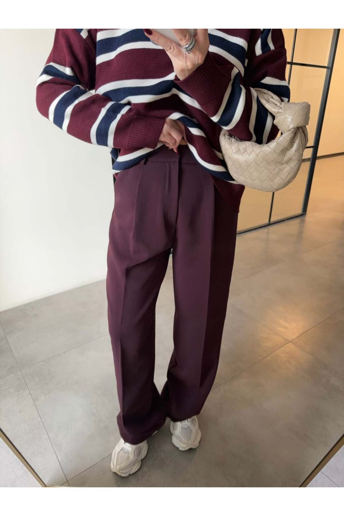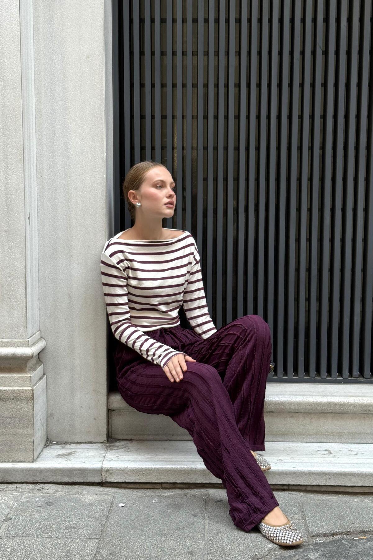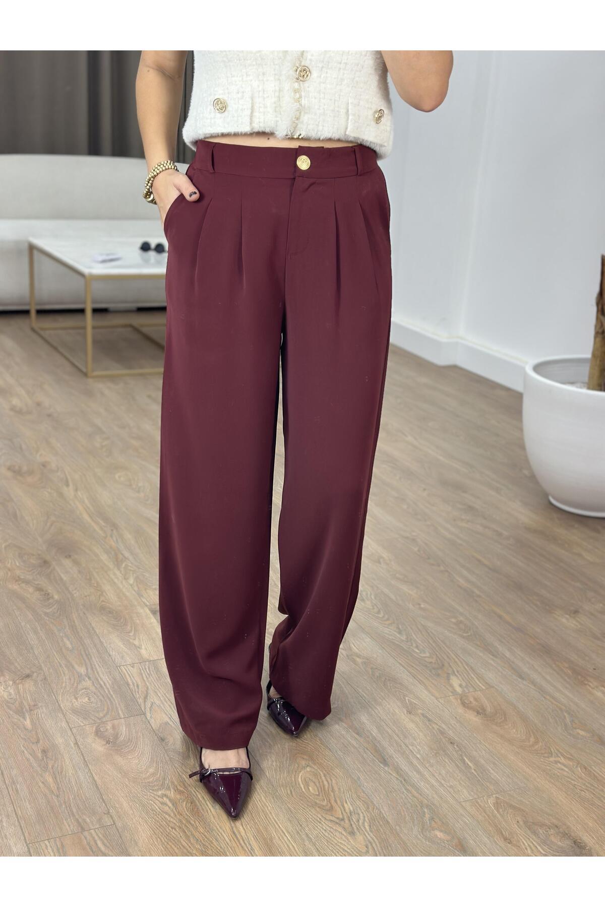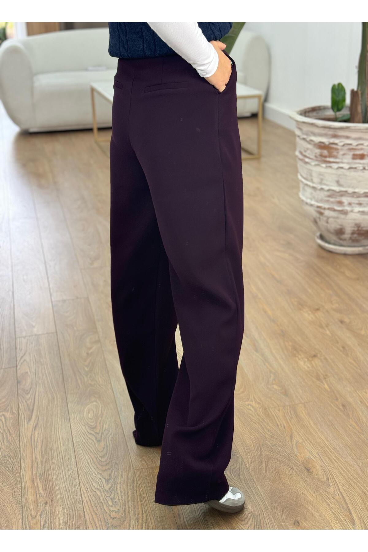 Premium Seri Tek Pile Palazzo Pantolon - Mürdüm Premium Seri Tek Pile Palazzo Pantolon - Mürdüm URN4514 L