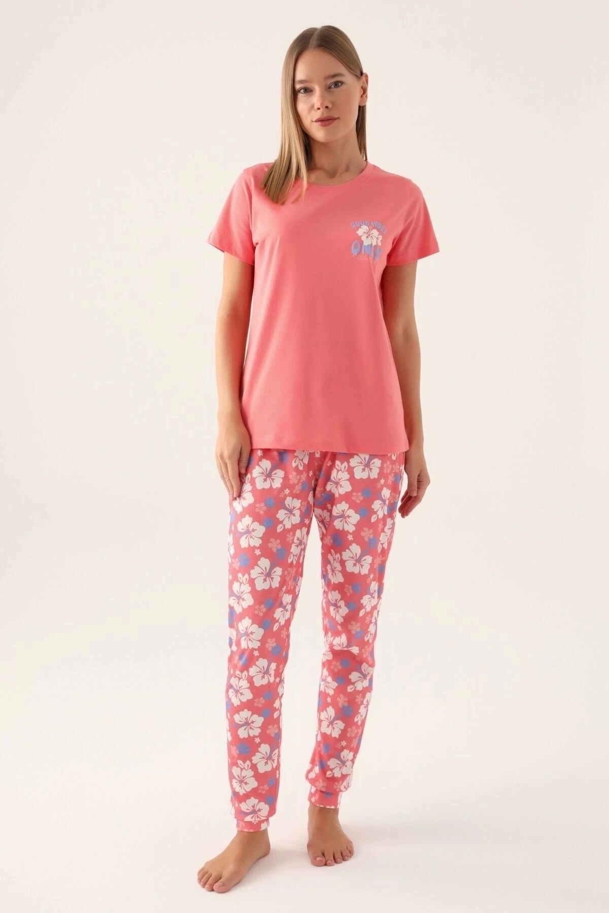 Kadın Pembe Kısa Kol Pijama Takım Kadın Pembe Kısa Kol Pijama Takım RP3587-S XL