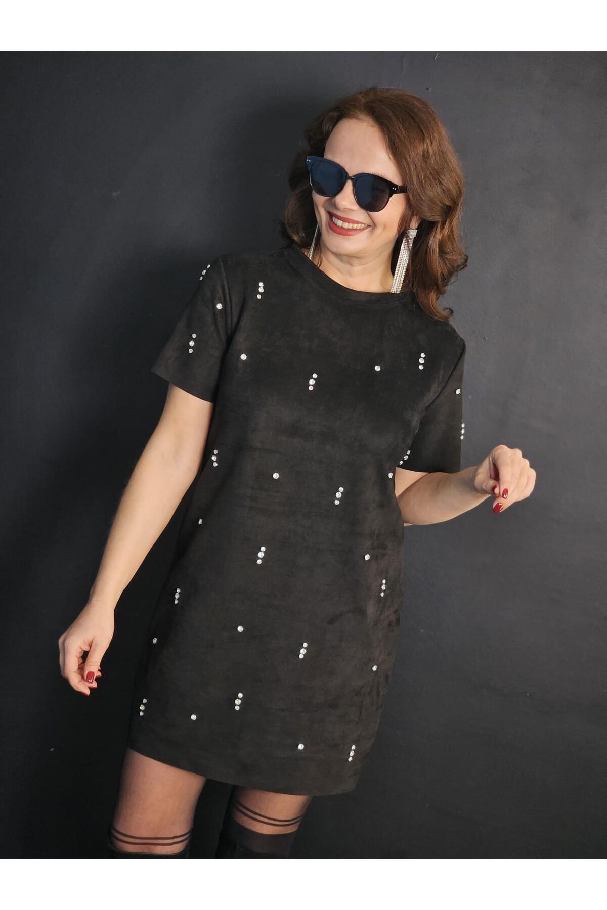 FELİX13023 Kısa Kol Taş Detaylı Siyah Süet Elbise FELİX13023 Kısa Kol Taş Detaylı Siyah Süet Elbise XL