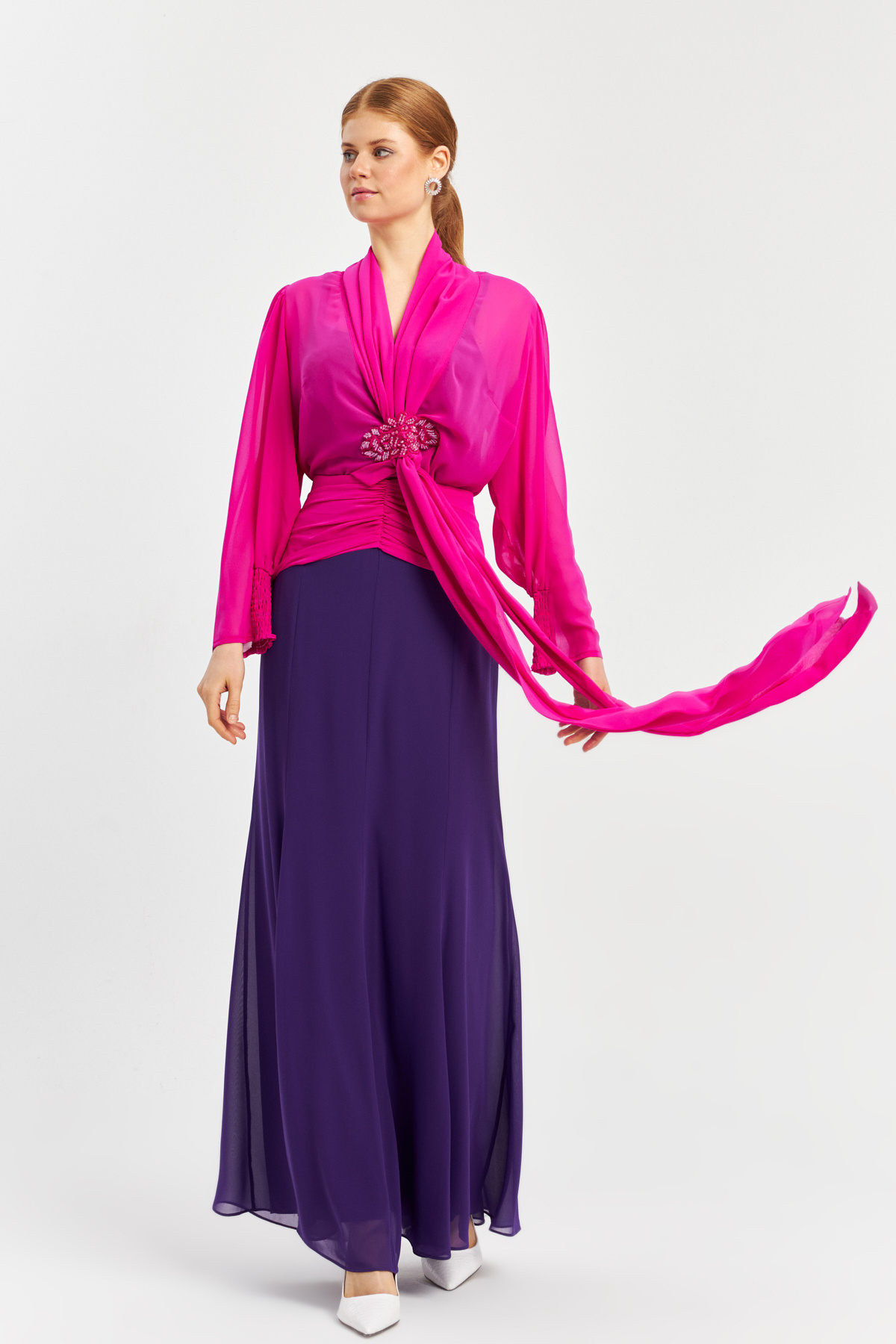 Şal yaka işleme detaylı Bluzlu ve Etekli 3lü Şifon Abiye Takım Şal yaka işleme detaylı Bluzlu ve Etekli 3lü Şifon Abiye Takım 598 42