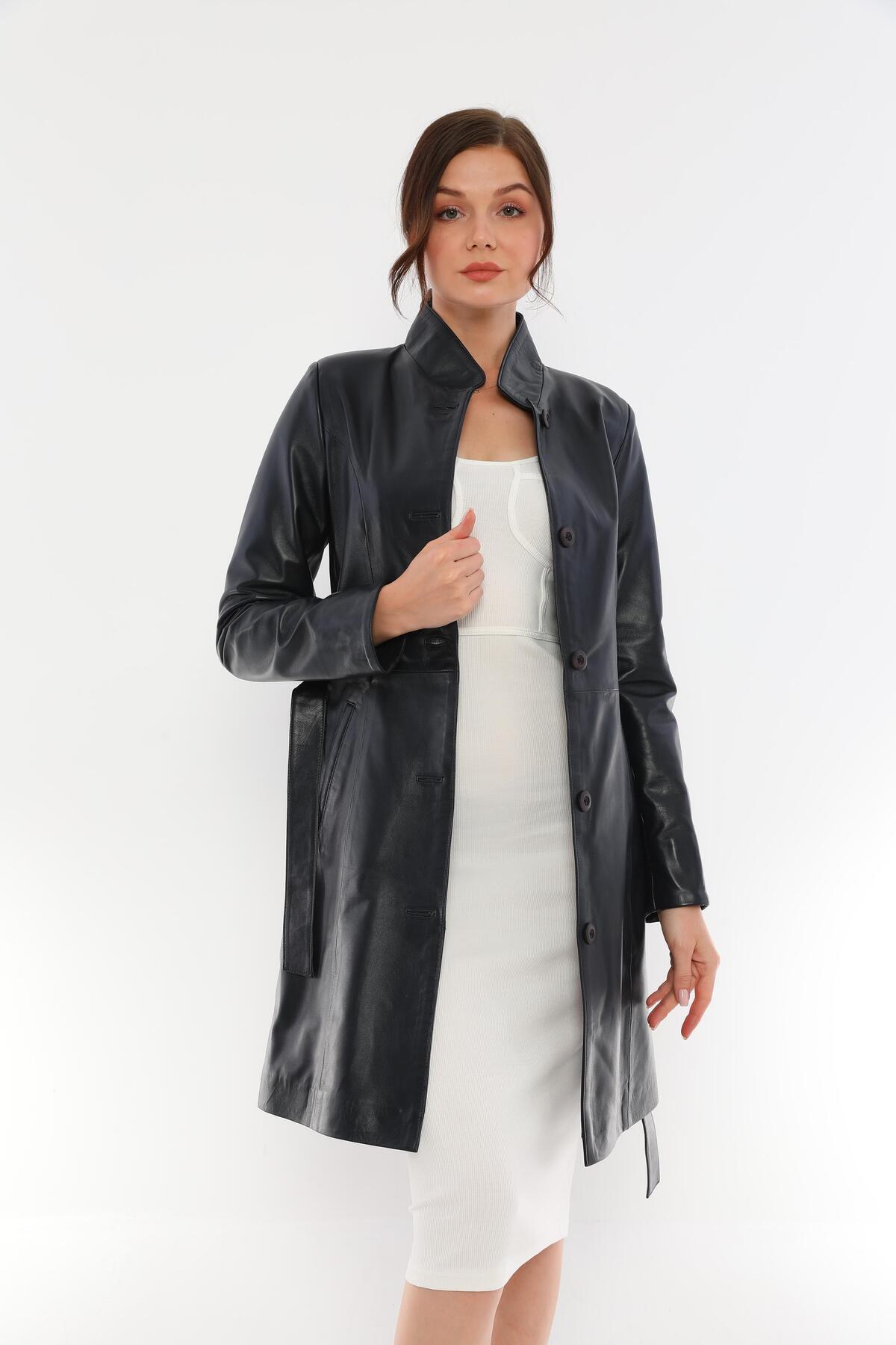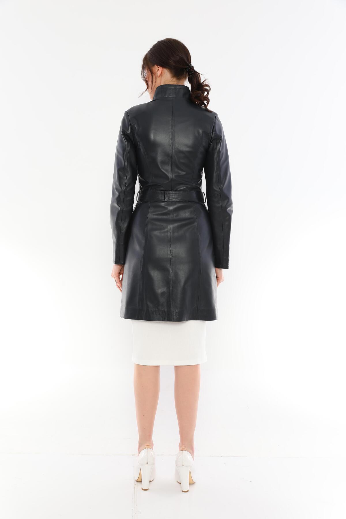 Kadın Kuşaklı Düğmeli Lacivert Deri Ceket - B3034 Kadın Kuşaklı Düğmeli Lacivert Deri Ceket - B3034 2XL