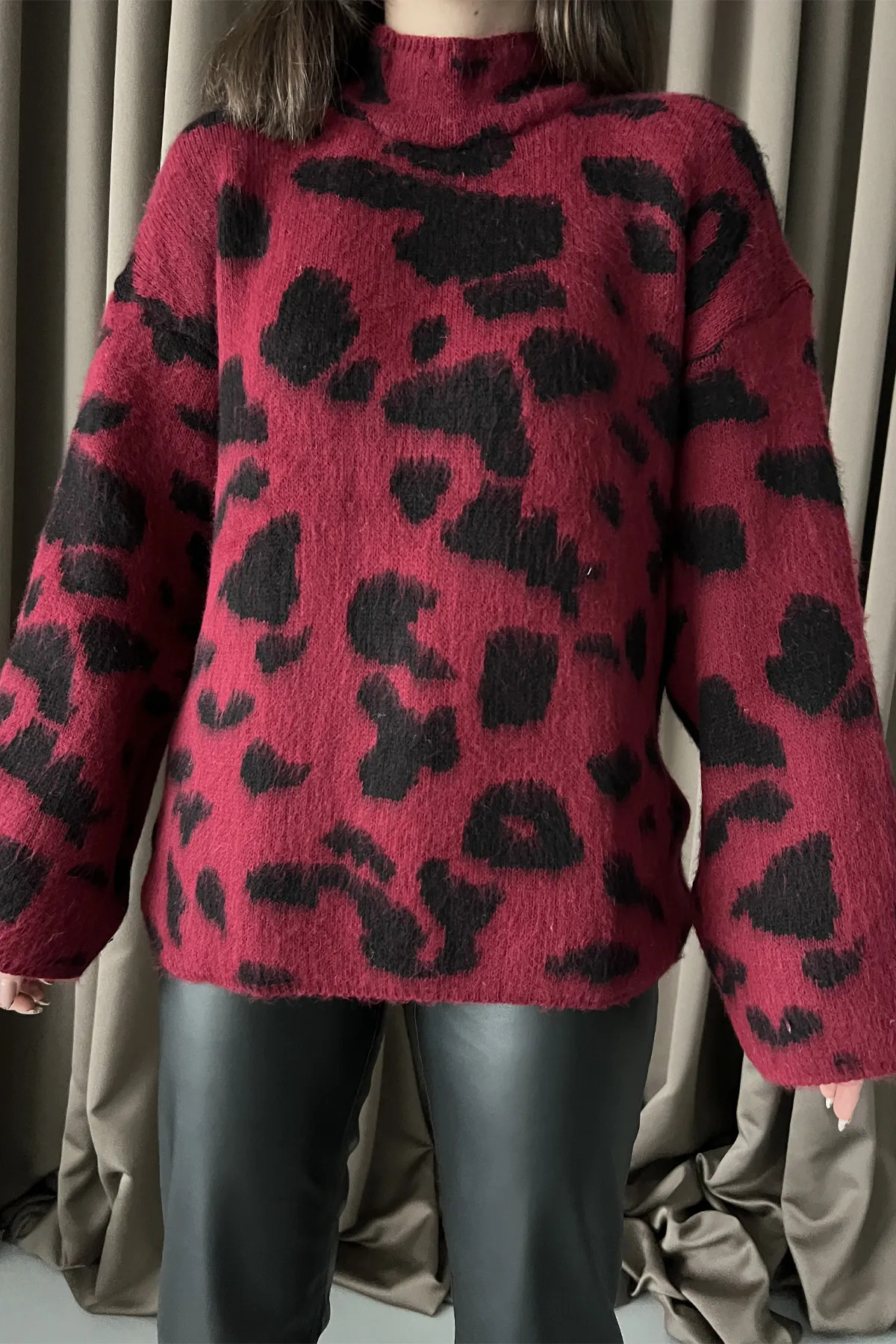 Leopar Desen Sakallı Triko Kazak Leopar Desen Sakallı Triko Kazak TR7575 Standart