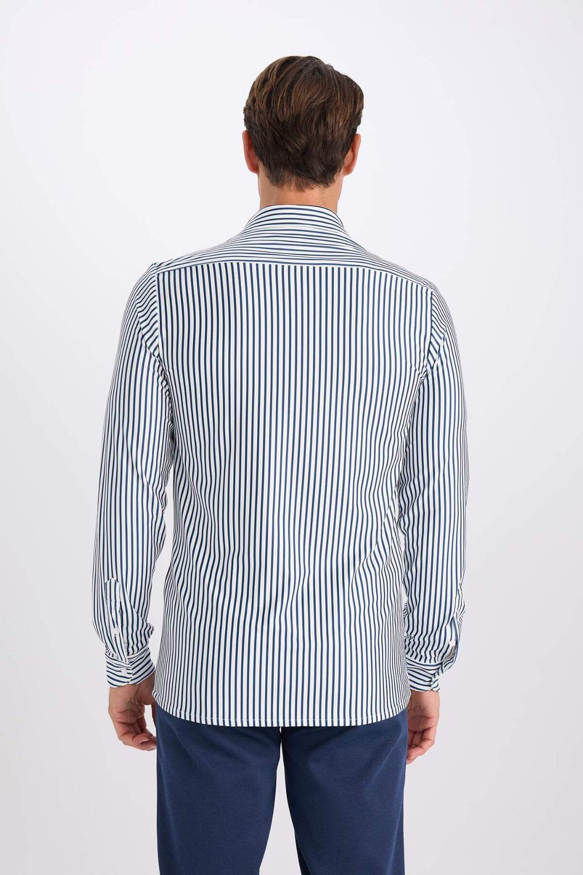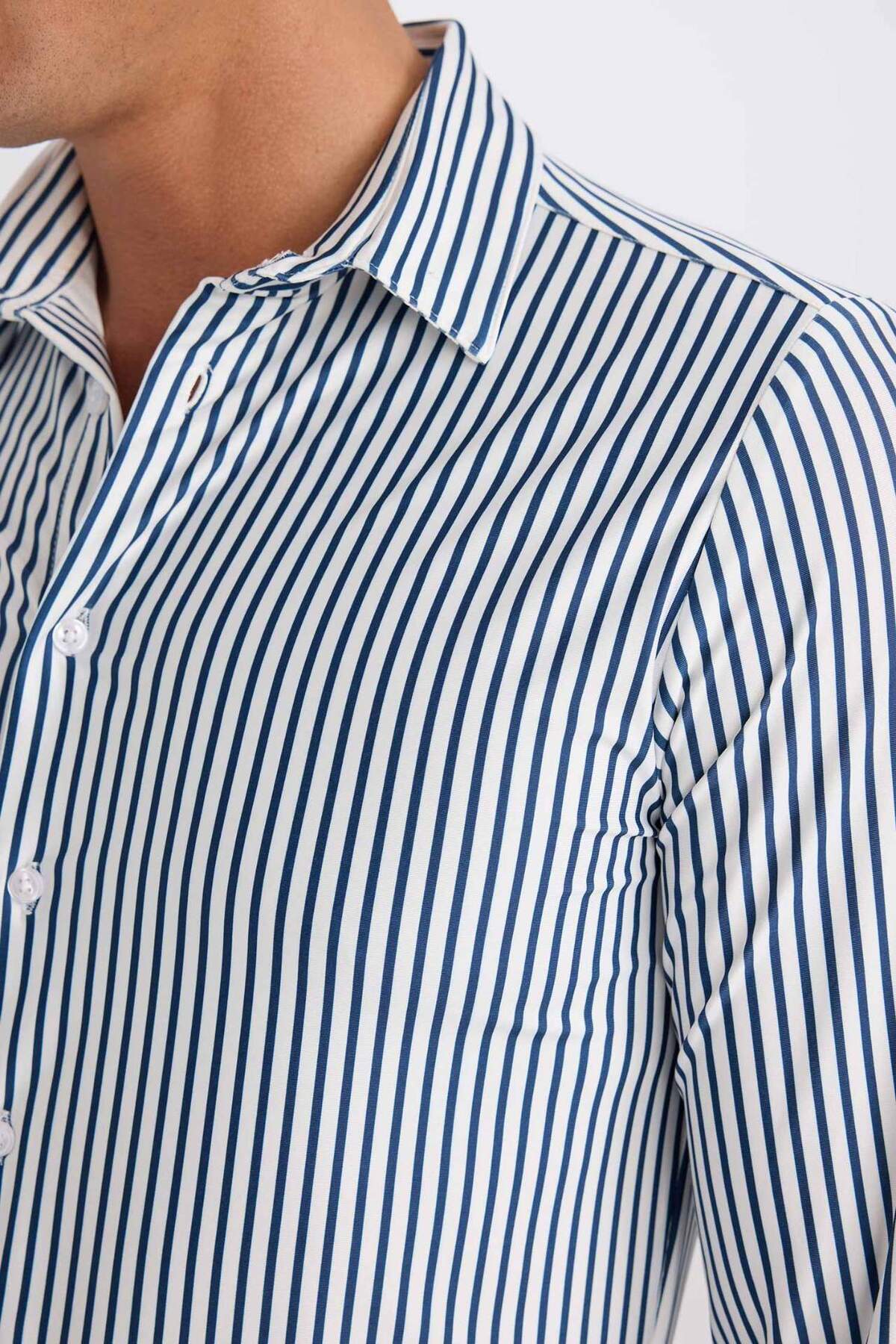 Slim Fit Dar Kesim Polo Yaka Çizgili Uzun Kollu Gömlek D4563AX24AU Slim Fit Dar Kesim Polo Yaka Çizgili Uzun Kollu Gömlek D4563AX24AU XL