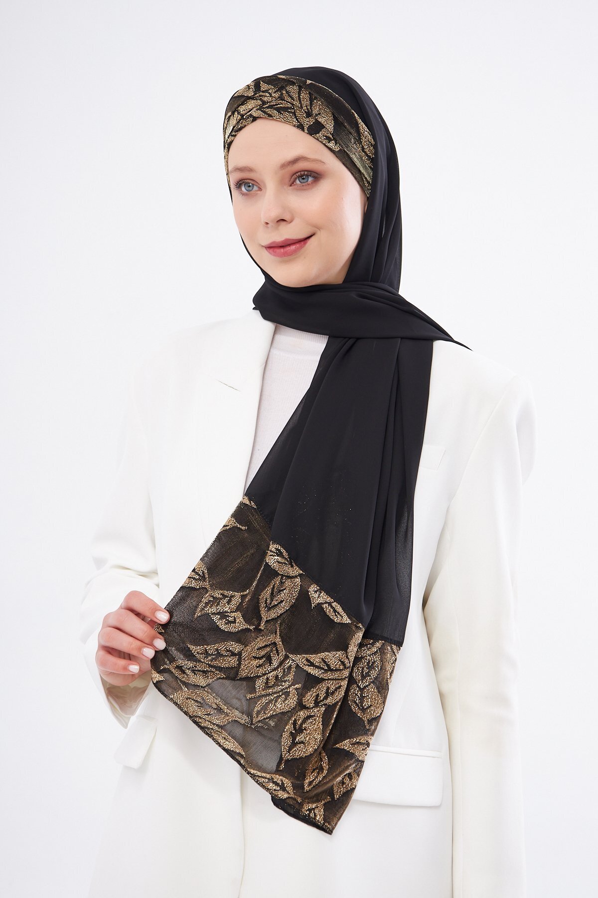 Siyah Çapraz Arkadan Bağlamalı Şal Şifon Çiçek Desenli 2330_01 Siyah Çapraz Arkadan Bağlamalı Şal Şifon Çiçek Desenli 2330_01 HB2330 تک سایز