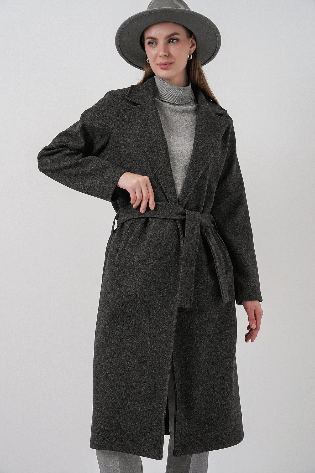 9118 Kruvaze Yaka Kaşe Kaban - C. Kahverengi 9118 Kruvaze Yaka Kaşe Kaban - C. Kahverengi 9118BGD19 42