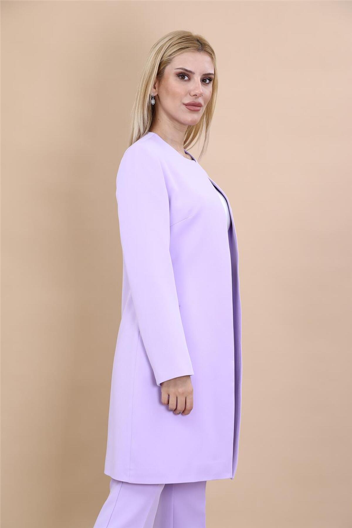 Sıfır Yaka Düz Uzun Ceket-Menekşe Sıfır Yaka Düz Uzun Ceket-Menekşe 1005100 44