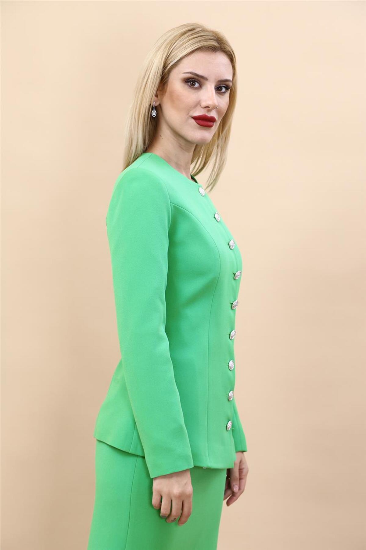 Sıfır Yaka Boydan Düğmeli Ceket-Yeşil Sıfır Yaka Boydan Düğmeli Ceket-Yeşil 1064100 44