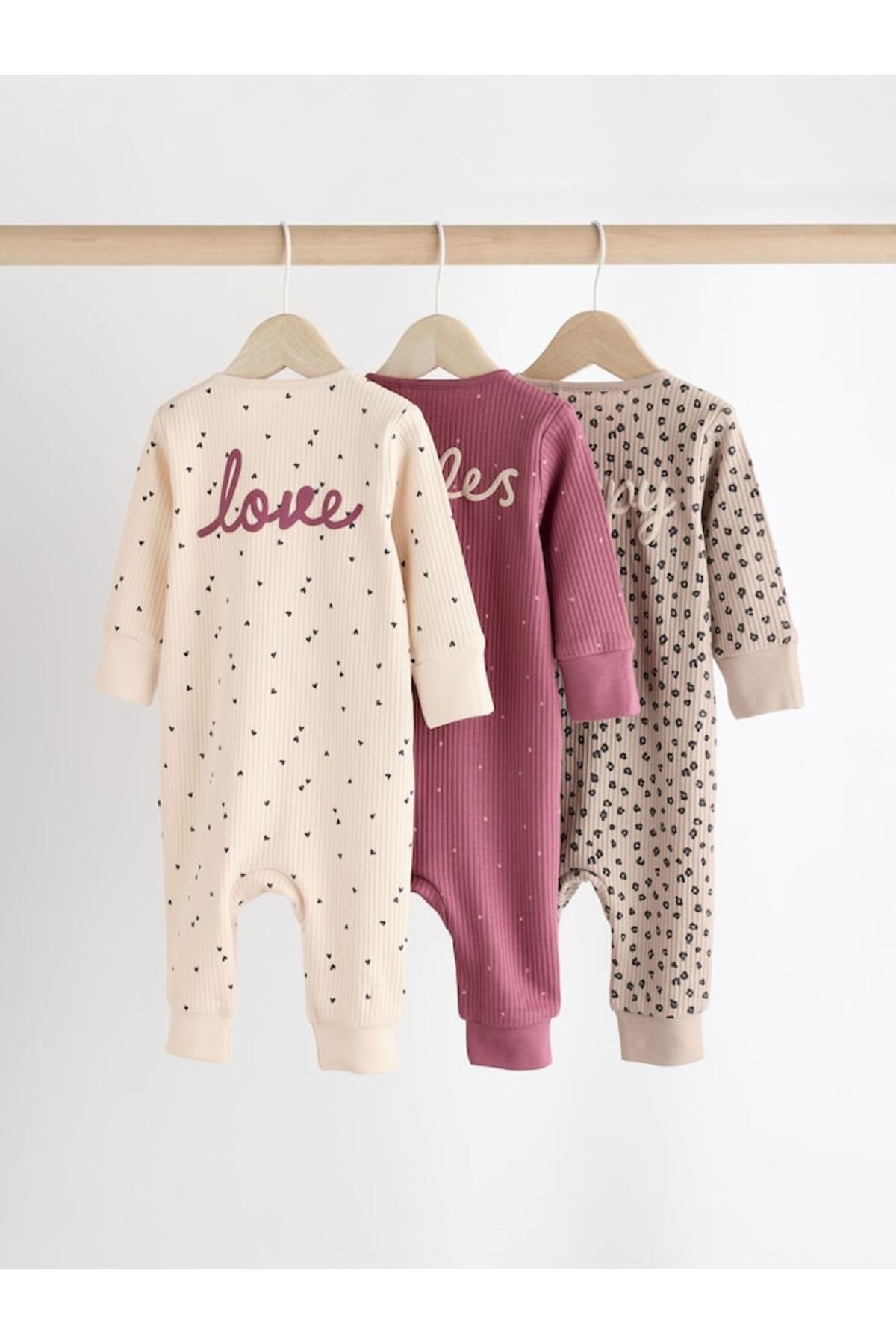 Pamuklu Krem Pembe Baskılı Fermuarlı 3'lü Tulum Set Pamuklu Krem Pembe Baskılı Fermuarlı 3'lü Tulum Set N77-686 24-36 Ay