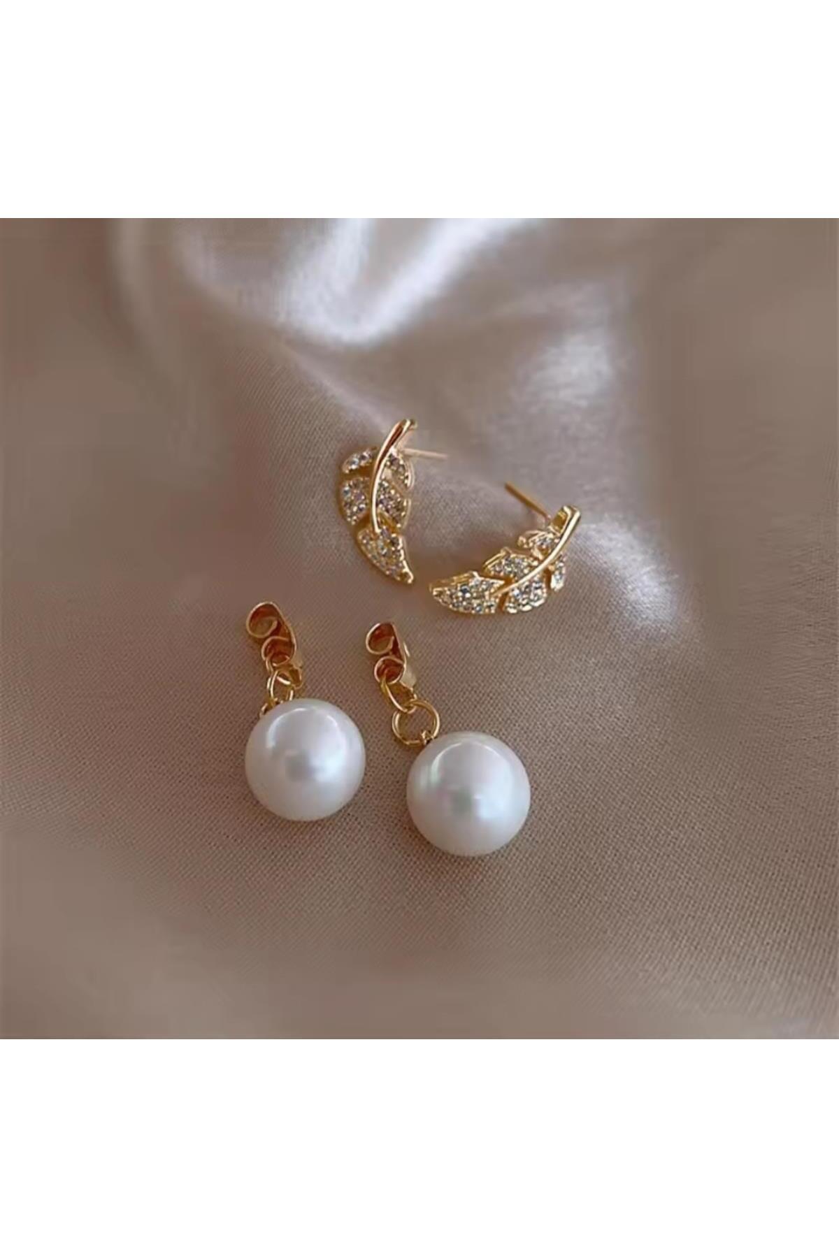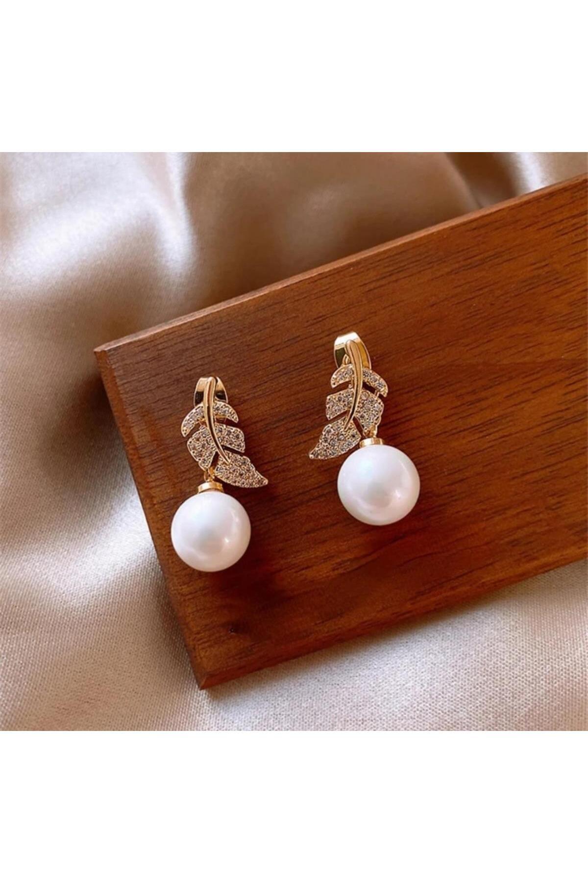 Zarif İnci Detaylı Yaprak Figürlü Çelik Küpe - Özel Tasarım Gold Renk Zarif İnci Detaylı Yaprak Figürlü Çelik Küpe - Özel Tasarım Gold Renk 207 تک سایز