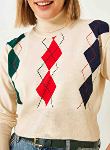 Kadın Balıkçı Yaka Desenli Triko Kazak 60351302 Kadın Balıkçı Yaka Desenli Triko Kazak 60351302 Standart