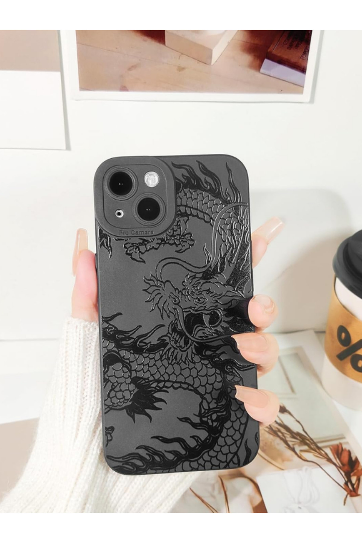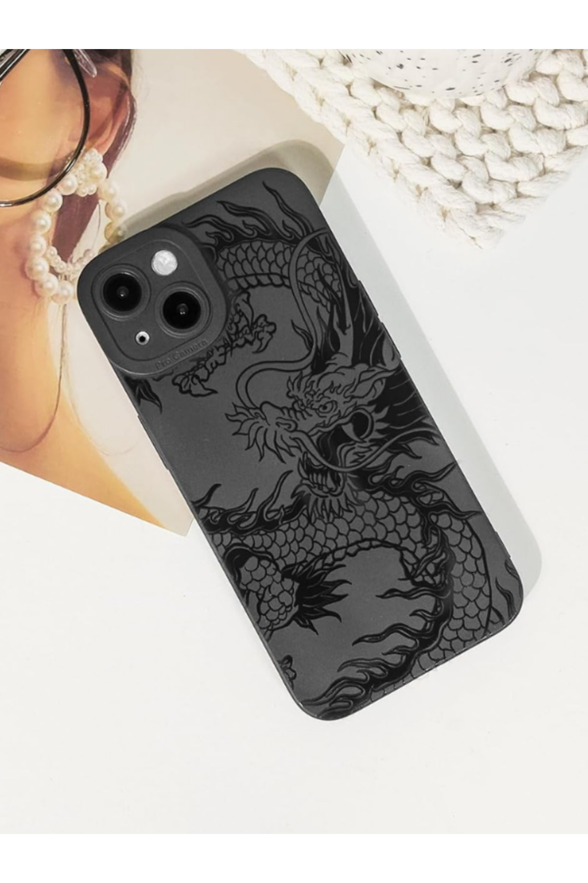İphone 15 Uyumlu Kılıf Mat Siyah Ejderha Desenli Darbelere Dayanıklı Yumuşak Kamera Korumalı Kapak İphone 15 Uyumlu Kılıf Mat Siyah Ejderha Desenli Darbelere Dayanıklı Yumuşak Kamera Korumalı Kapak 15matsiyah تک سایز