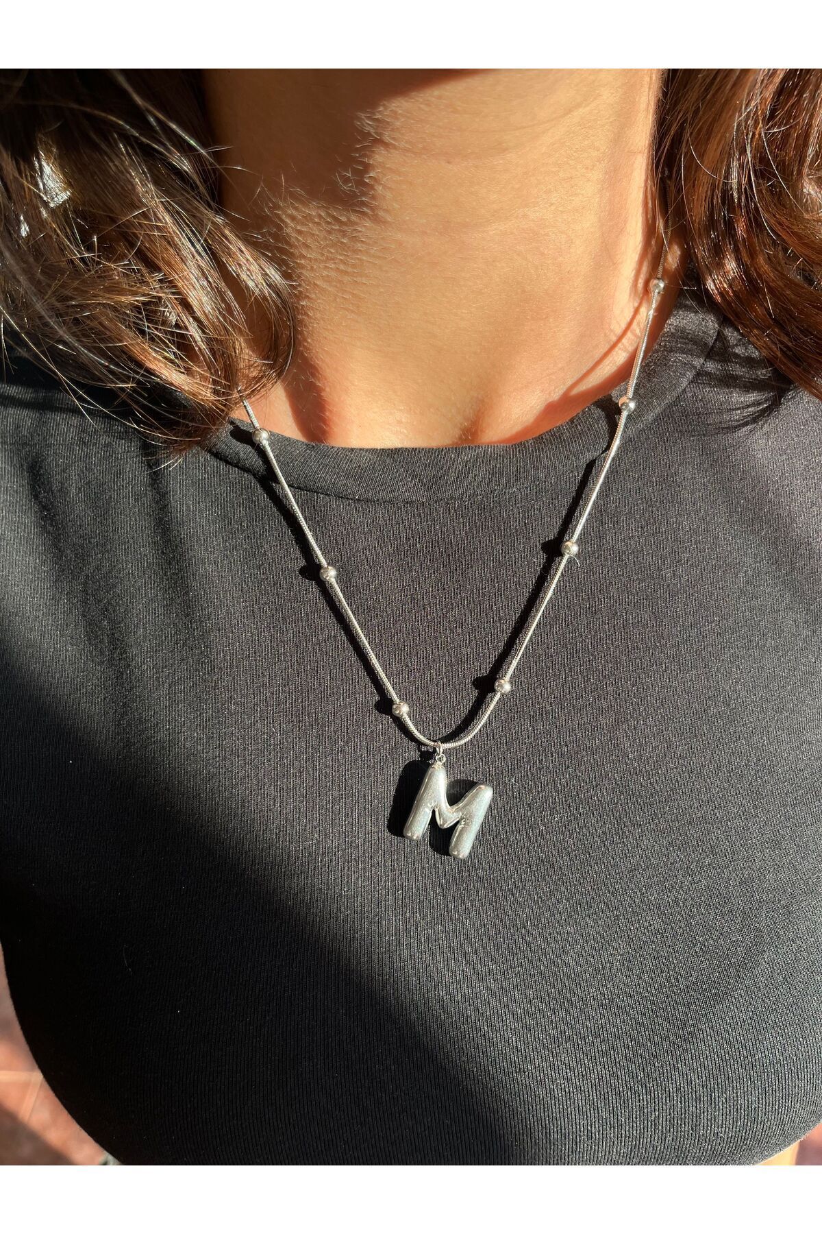 Minimal Harf - Gümüş Renkli Çelik Kolye - M Minimal Harf - Gümüş Renkli Çelik Kolye - M SNSART10 تک سایز