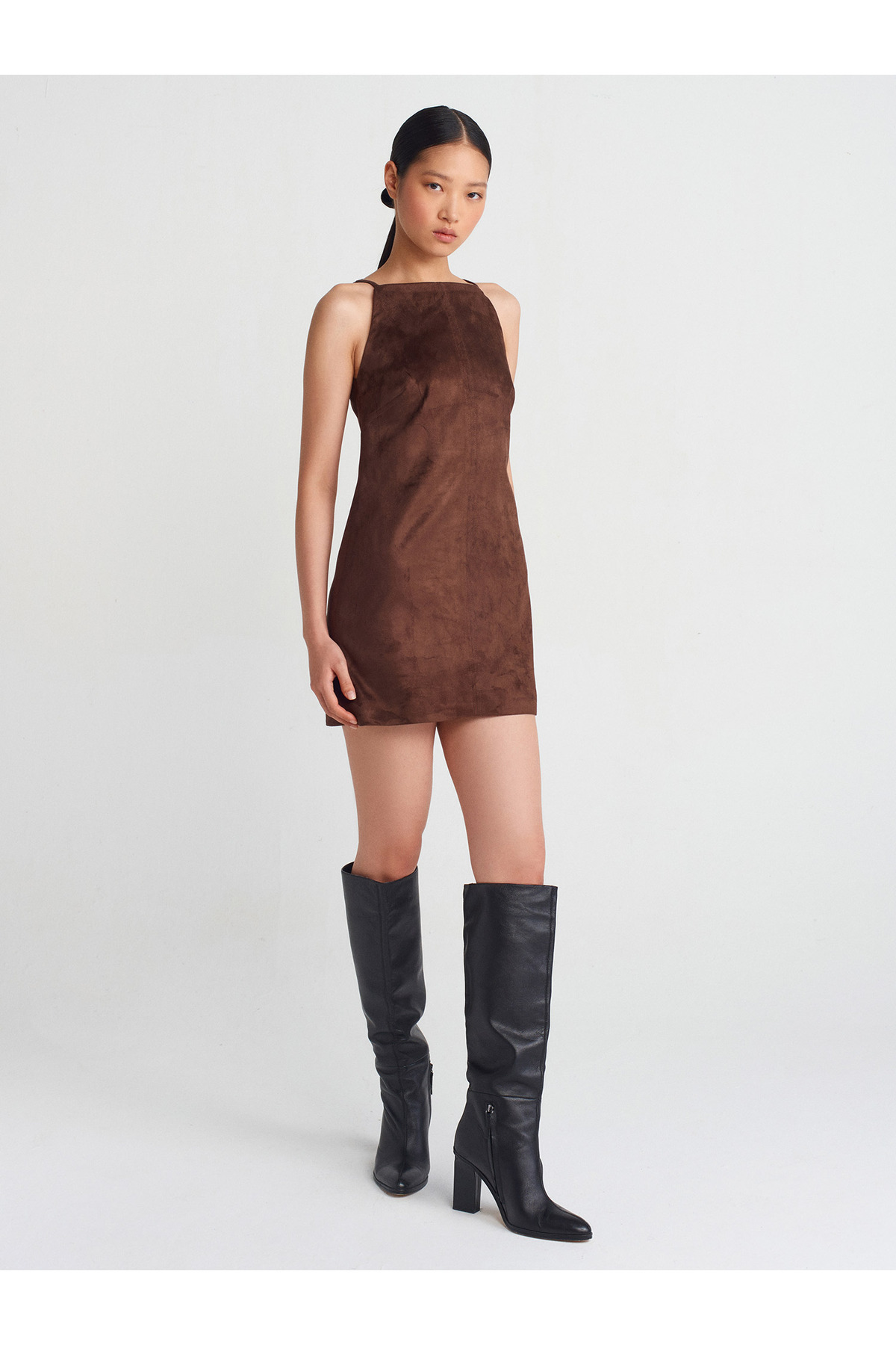 90909 Askılı Kısa Süet Elbise-Kahve 90909 Askılı Kısa Süet Elbise-Kahve 101A90909 40