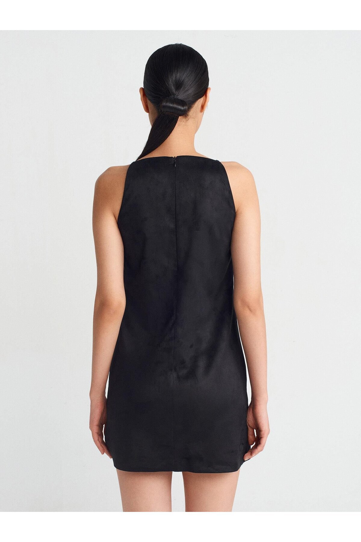 Askılı Mini Süet Elbise -Siyah Askılı Mini Süet Elbise -Siyah 101A90909 40