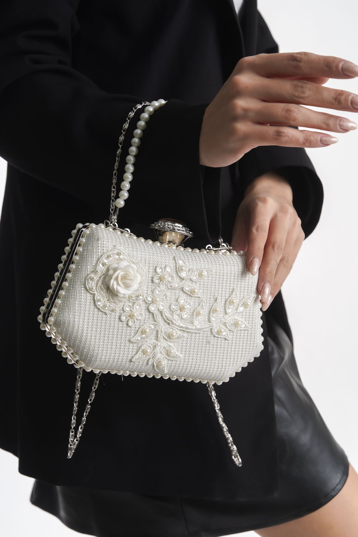 Gelin Çantası , Inci Taşlı Örgülü Çiçek Motifli Özel Tasarımlı Kadın Abiye Çantası Kolye Hediyeli Gelin Çantası , Inci Taşlı Örgülü Çiçek Motifli Özel Tasarımlı Kadın Abiye Çantası Kolye Hediyeli GZL01-01-0008 تک سایز
