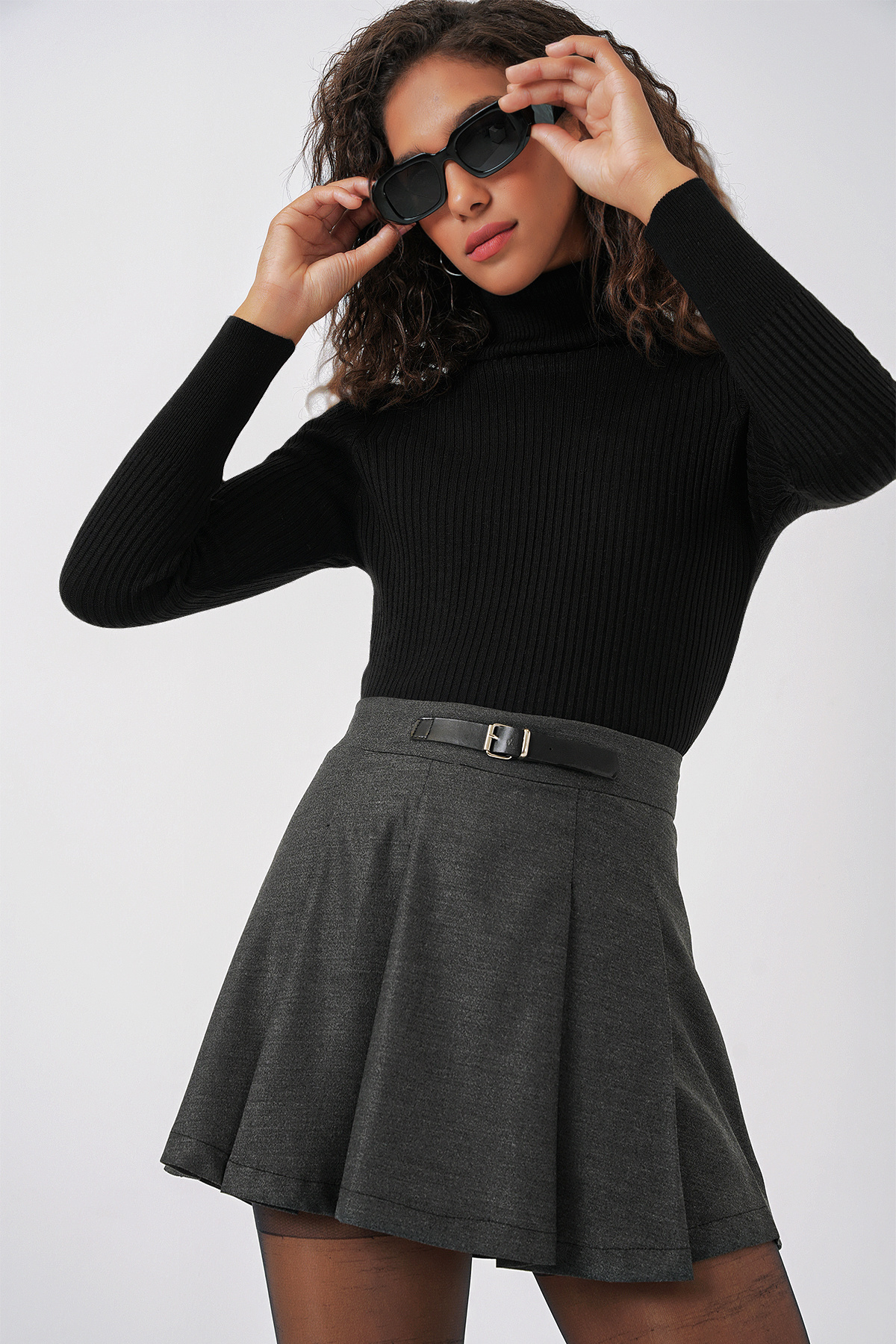 4335 Kadın Kemerli Mini Şort Etek - Antrasit 4335 Kadın Kemerli Mini Şort Etek - Antrasit 4335BGD19 40