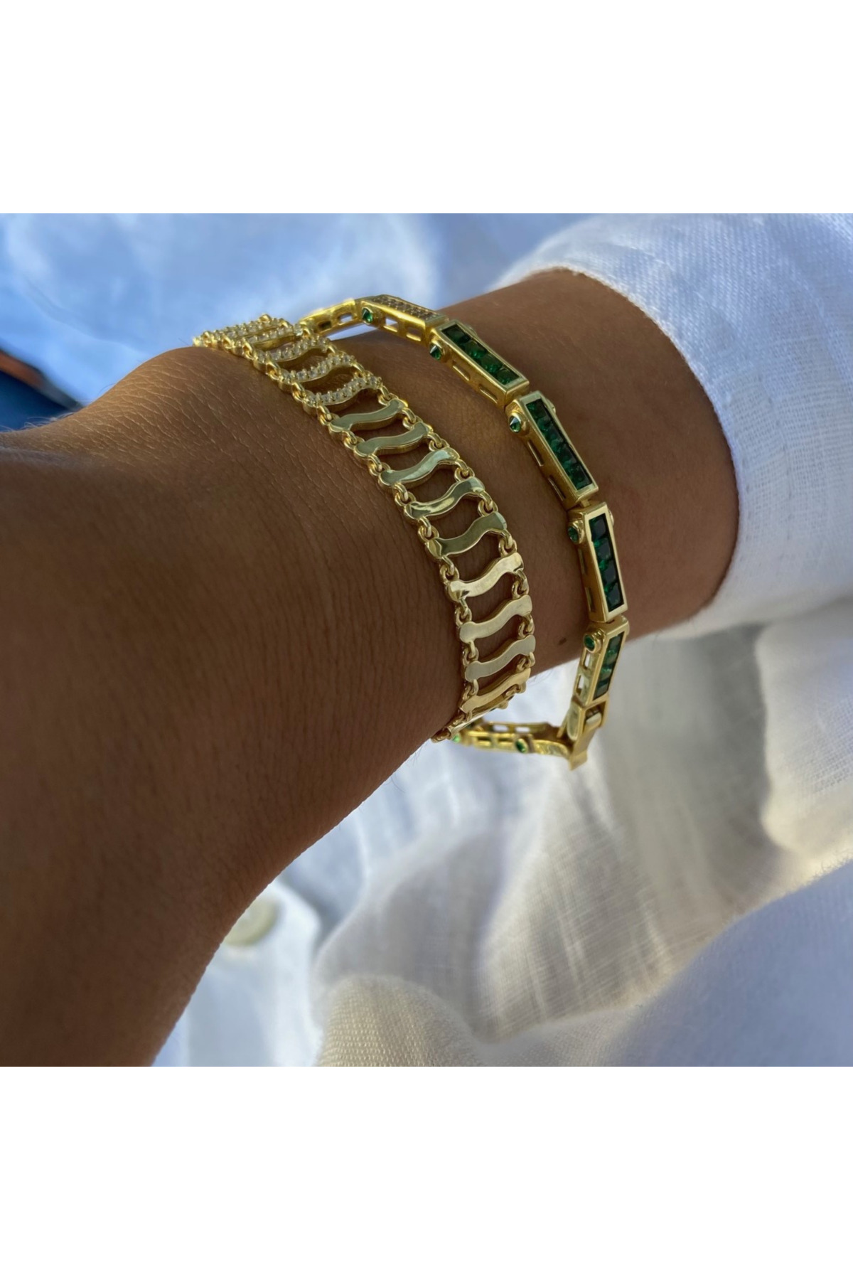 üçgen figürlü taşlı altın görünümlü gümüş bileklik üçgen figürlü taşlı altın görünümlü gümüş bileklik 00520394874 17 cm