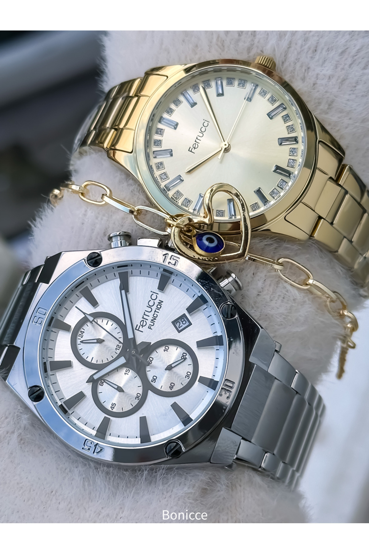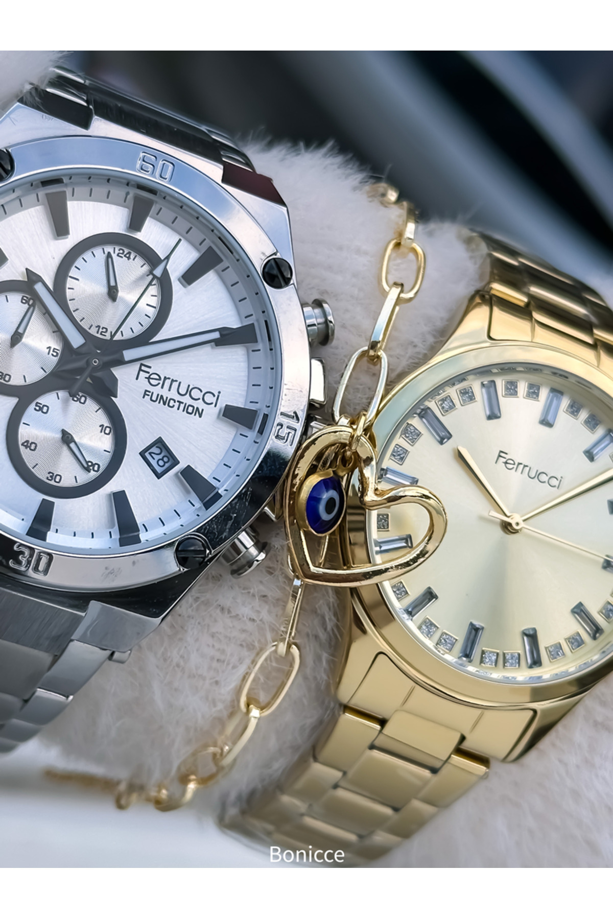 Marka Kadran Fonksiyonları Aktif Gümüş Sarı Renk Çelik Kordon Sevgili Kol Saati Bileklik Marka Kadran Fonksiyonları Aktif Gümüş Sarı Renk Çelik Kordon Sevgili Kol Saati Bileklik FR14BNCSVGX تک سایز