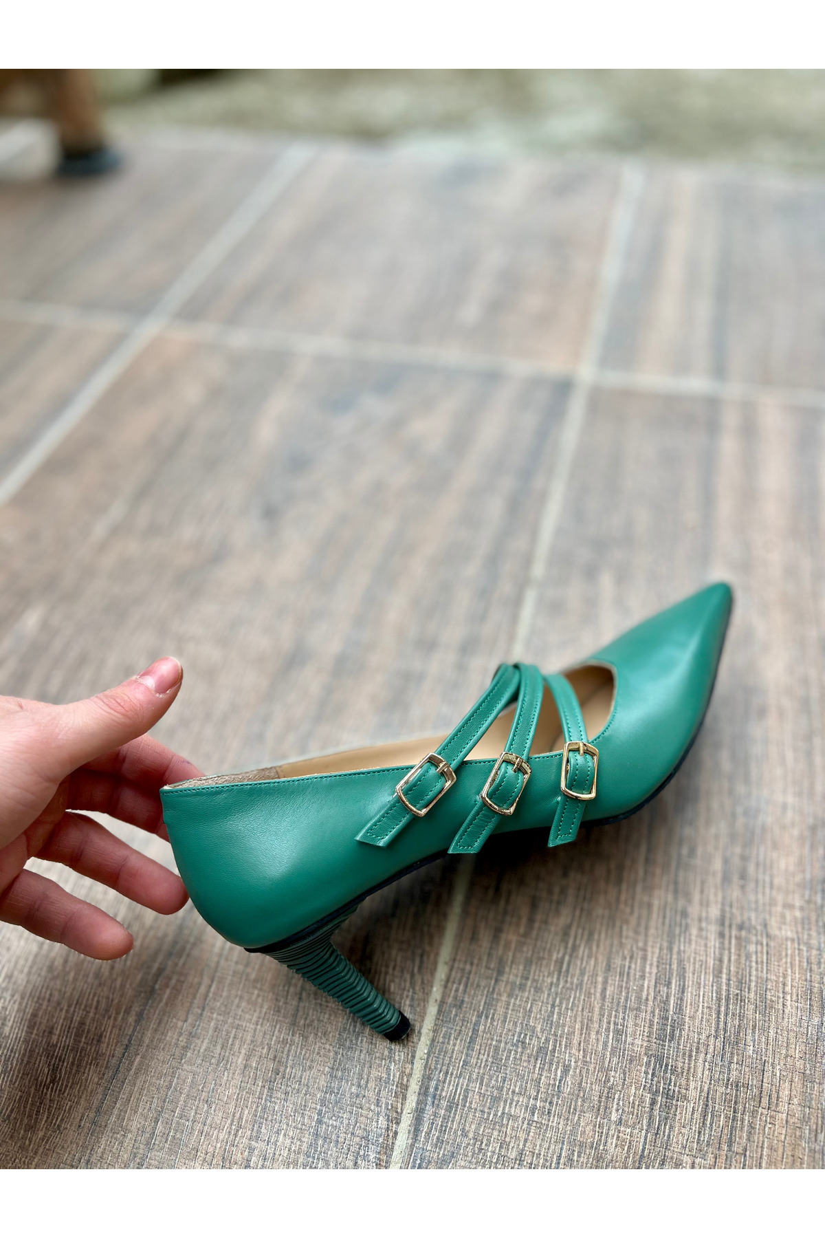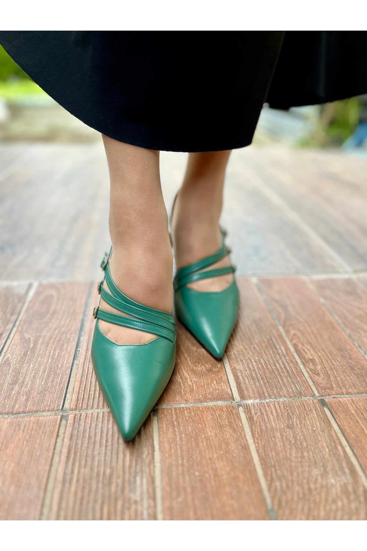Kadın Şık Tasarımlı Kesimli Hakiki Derili Yeşil Renk Sivri Topuklu Ayakkabı Kadın Şık Tasarımlı Kesimli Hakiki Derili Yeşil Renk Sivri Topuklu Ayakkabı 27990 40