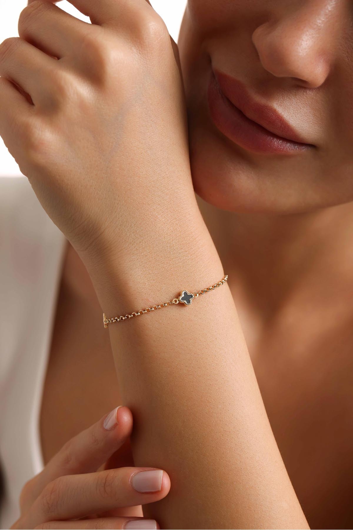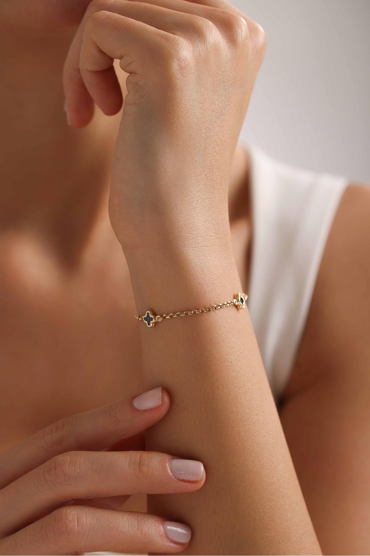 14 Ayar Altın Siyah Yonca Bileklik 14 Ayar Altın Siyah Yonca Bileklik 8684722002928 21 cm