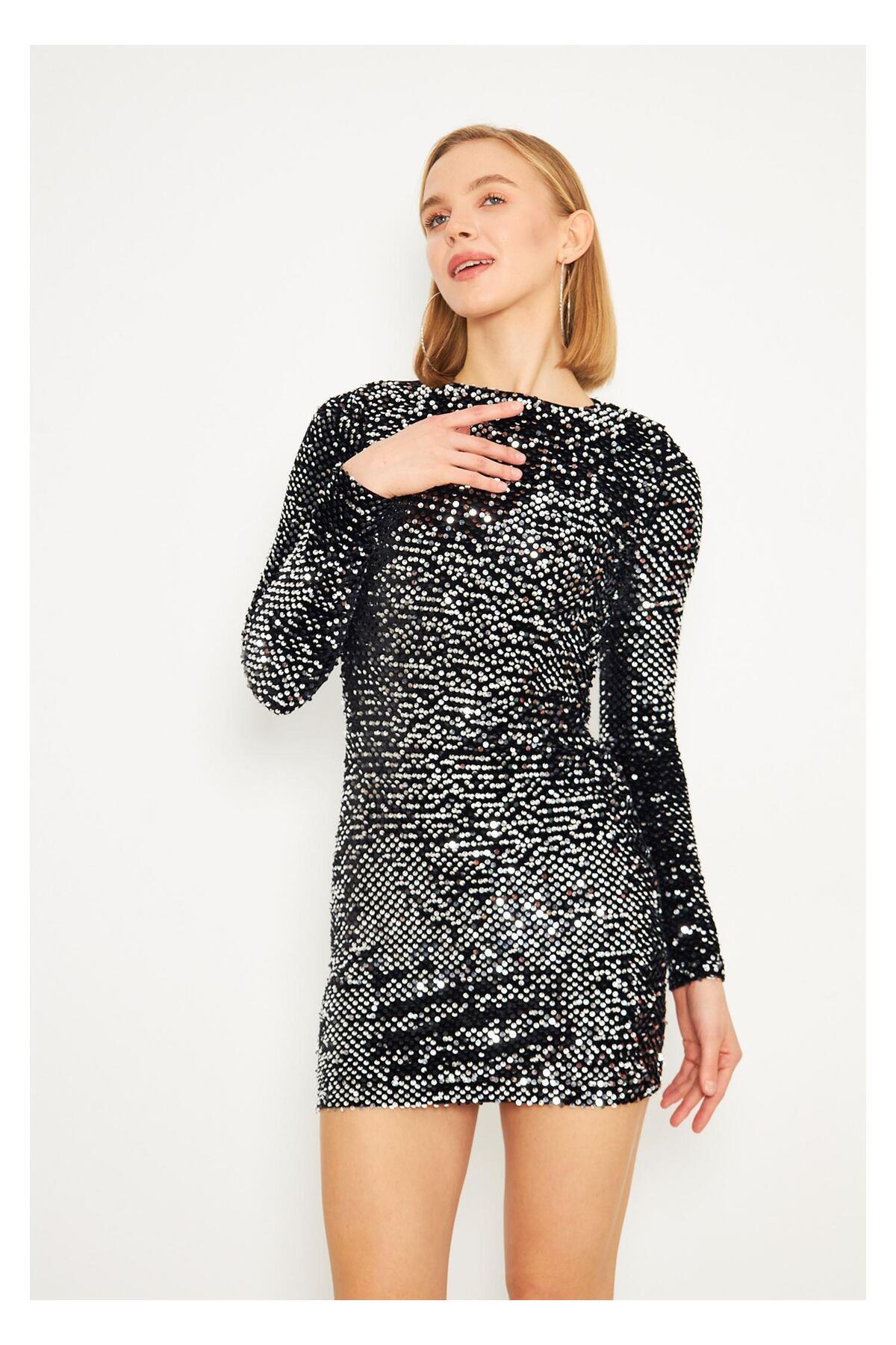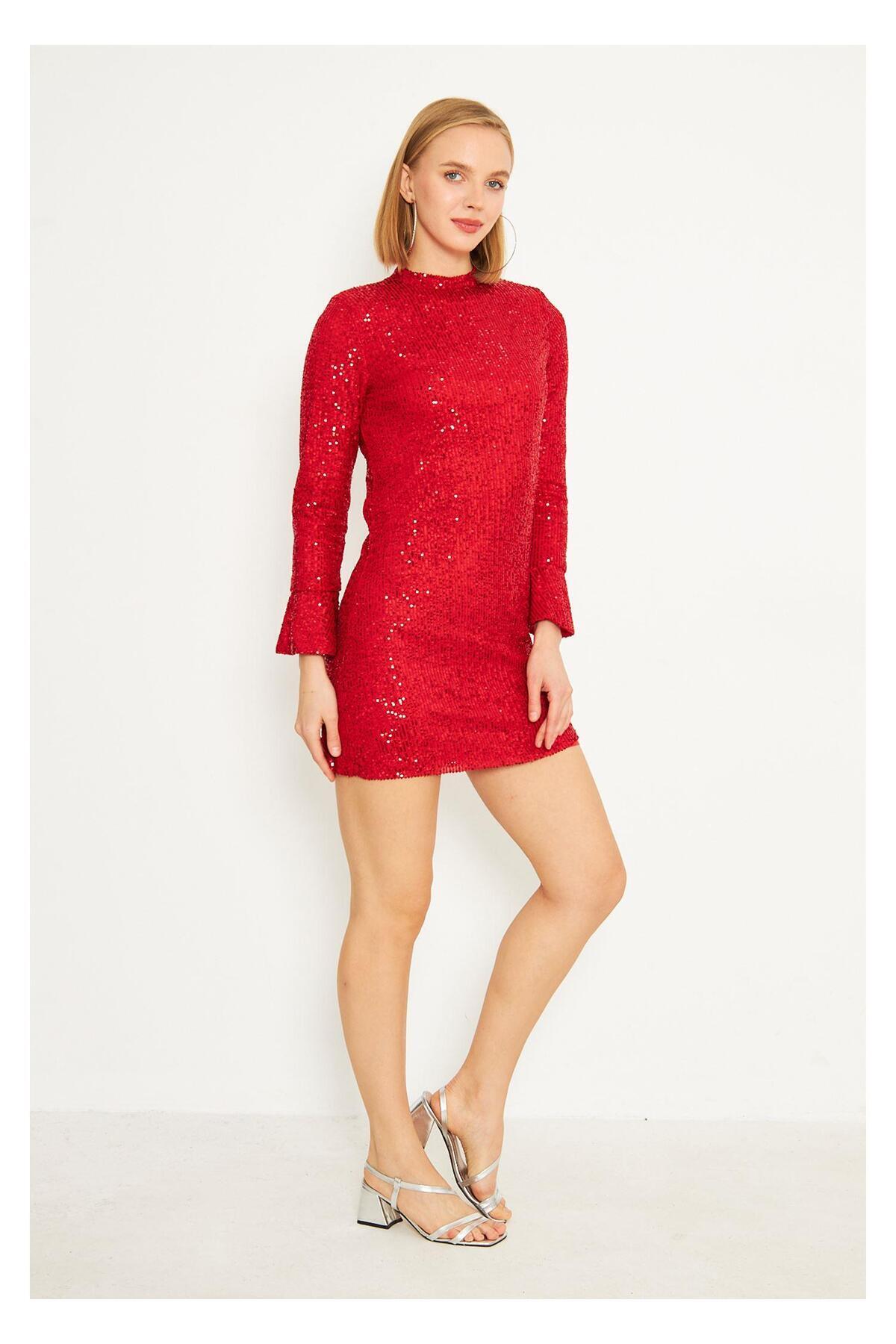 Sırt Dekolteli Kolları Volanlı Kırmızı Pul Payet Elbise Sırt Dekolteli Kolları Volanlı Kırmızı Pul Payet Elbise ELB0158K L