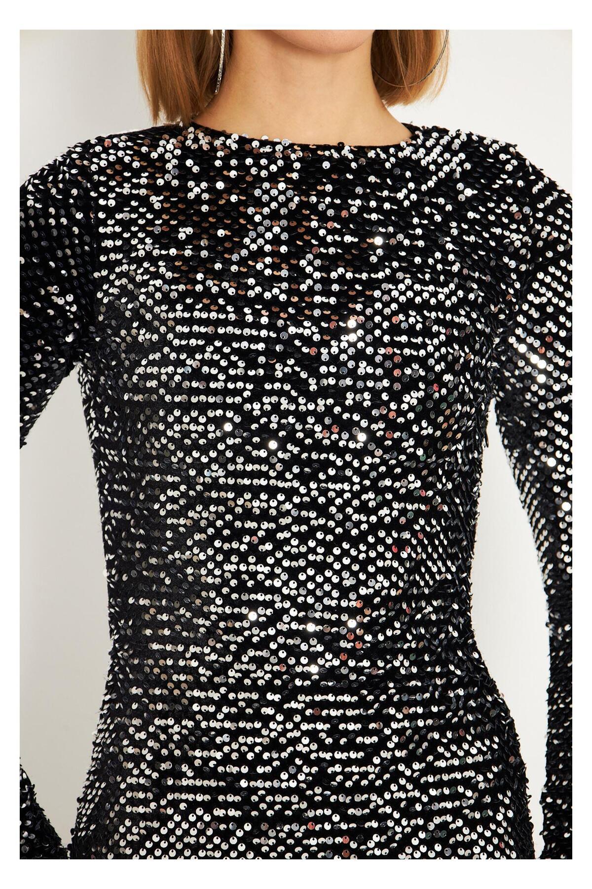 Kadife Gümüş Pul Payet Elbise Kadife Gümüş Pul Payet Elbise ELB0201K XL