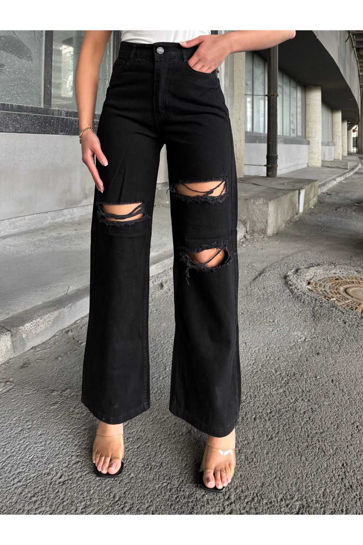 KADIN SİYAH ÇİFT DİZ LAZER YIRTIK YÜKSEK BEL BOL PAÇA JEANS PANTOLON KADIN SİYAH ÇİFT DİZ LAZER YIRTIK YÜKSEK BEL BOL PAÇA JEANS PANTOLON kn013 44