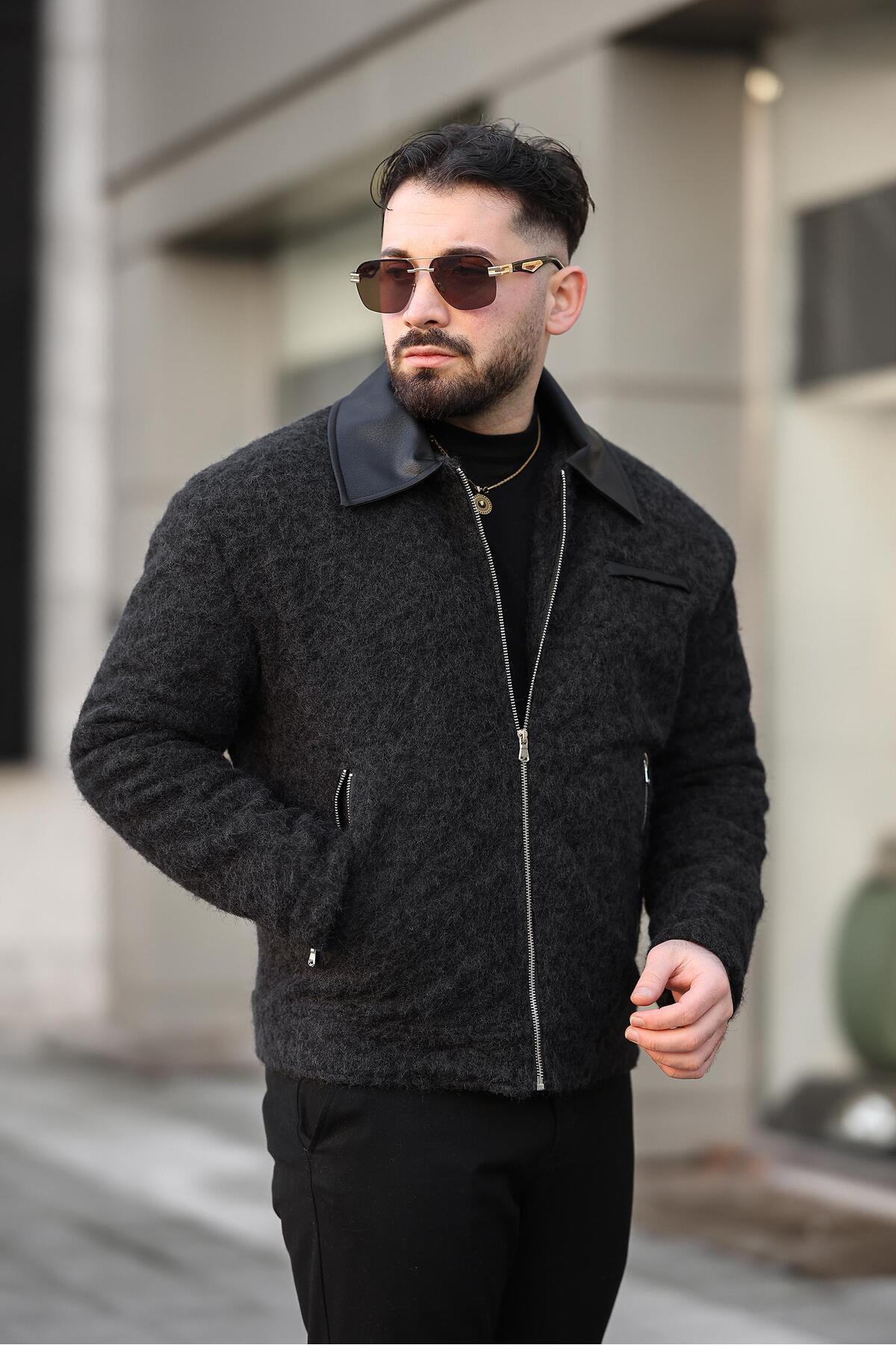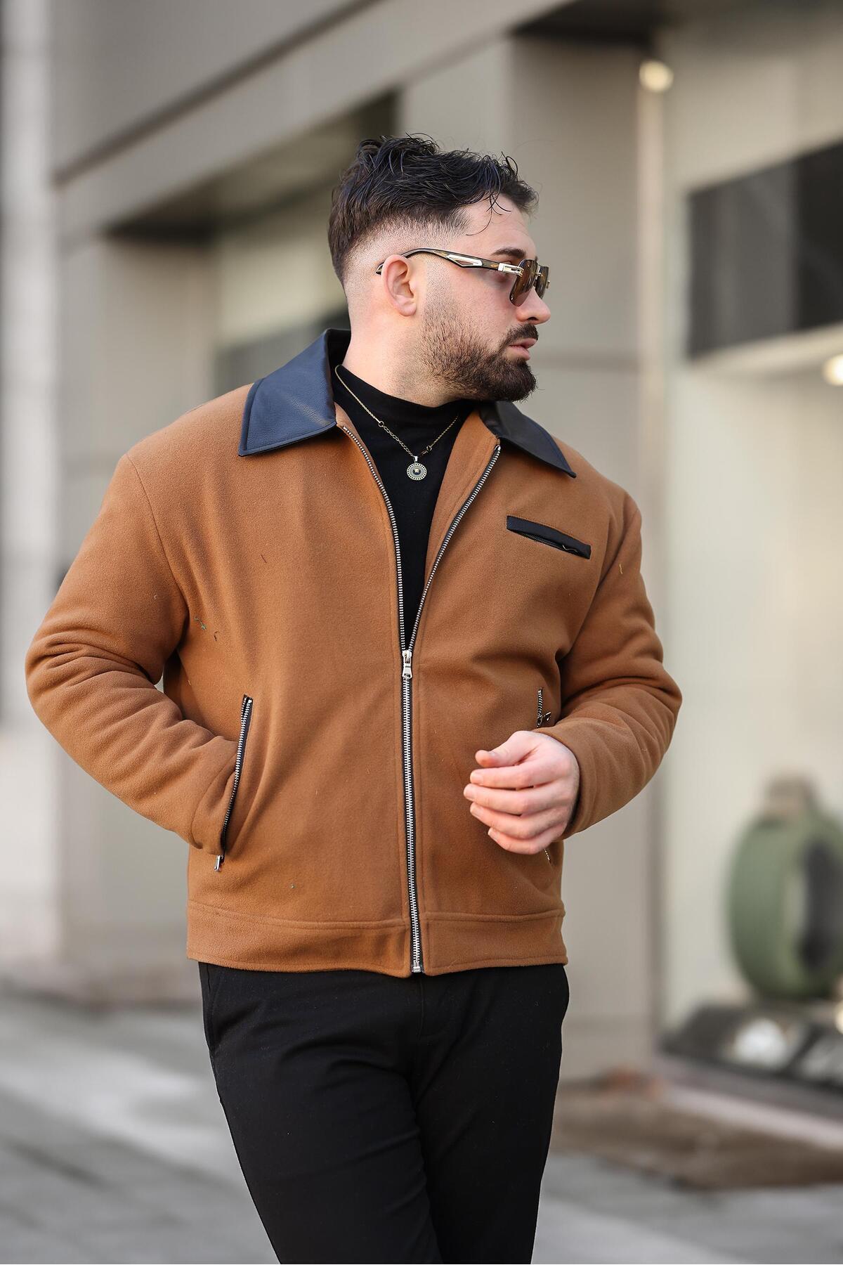 YAKASI DERİ DETAYLI ERKEK KAŞE MONT YAKASI DERİ DETAYLI ERKEK KAŞE MONT 9030 2XL